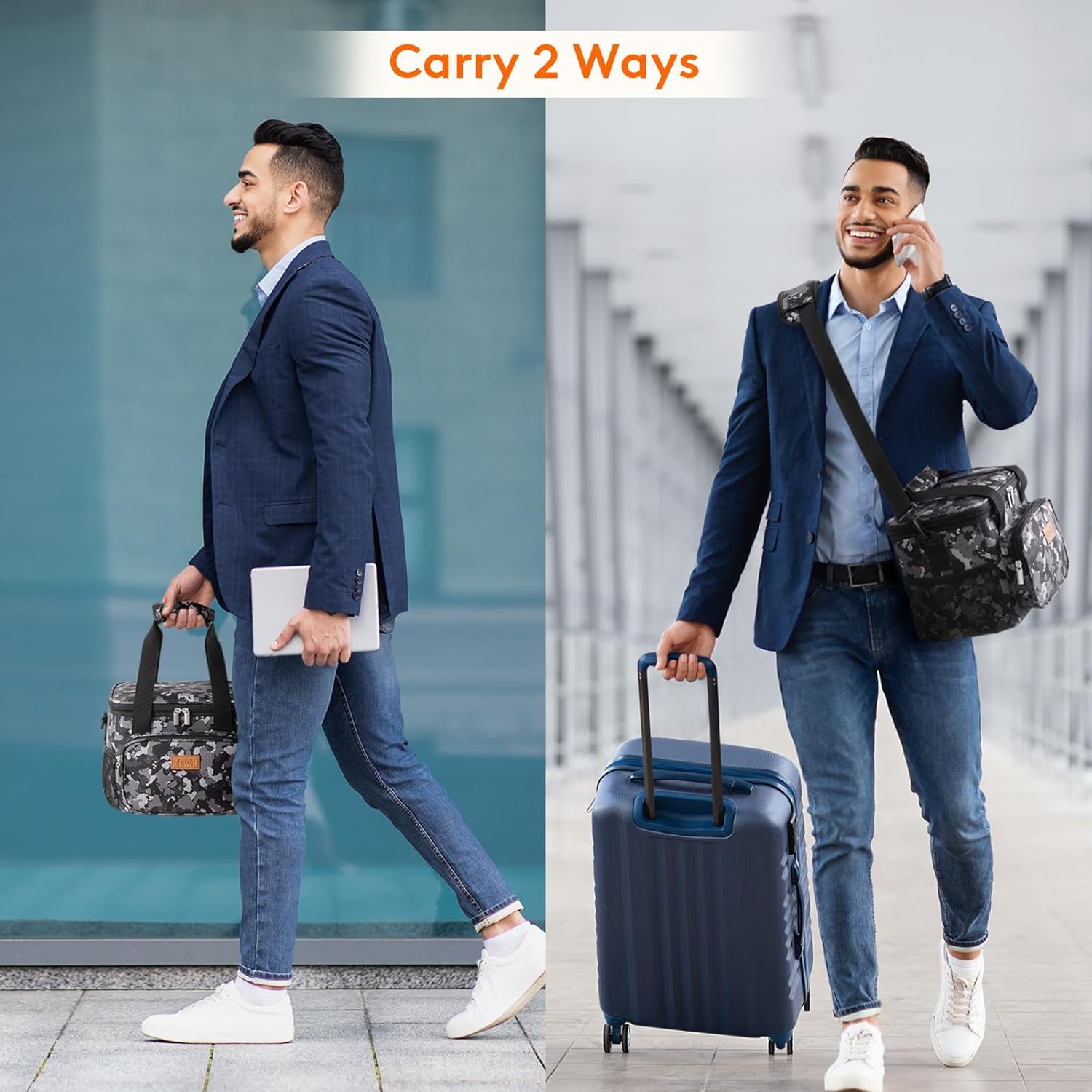 - Convenient & Portable: The lid of this cooler lunch bag can be opened up widely with strong two-way zippers, which means you can put your lunch container into the bag and take out of the bag vertically. Prevent liquids from leaking out of the container and soiling inside the bag. Tough handles and shoulder girdle allows you to carry it easily. Moreover, the front and side extra pocket can hold small items like keys and earbuds.