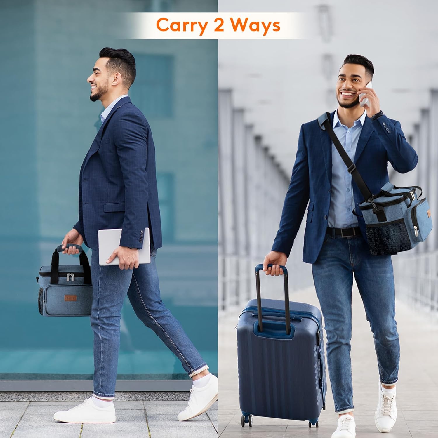 - Convenient & Portable: The lid of this cooler lunch bag can be opened up widely with strong two-way zippers, which means you can put your lunch container into the bag and take out of the bag vertically. Prevent liquids from leaking out of the container and soiling inside the bag. Tough handles and shoulder girdle allows you to carry it easily. Moreover, the front and side extra pocket can hold small items like keys and earbuds.