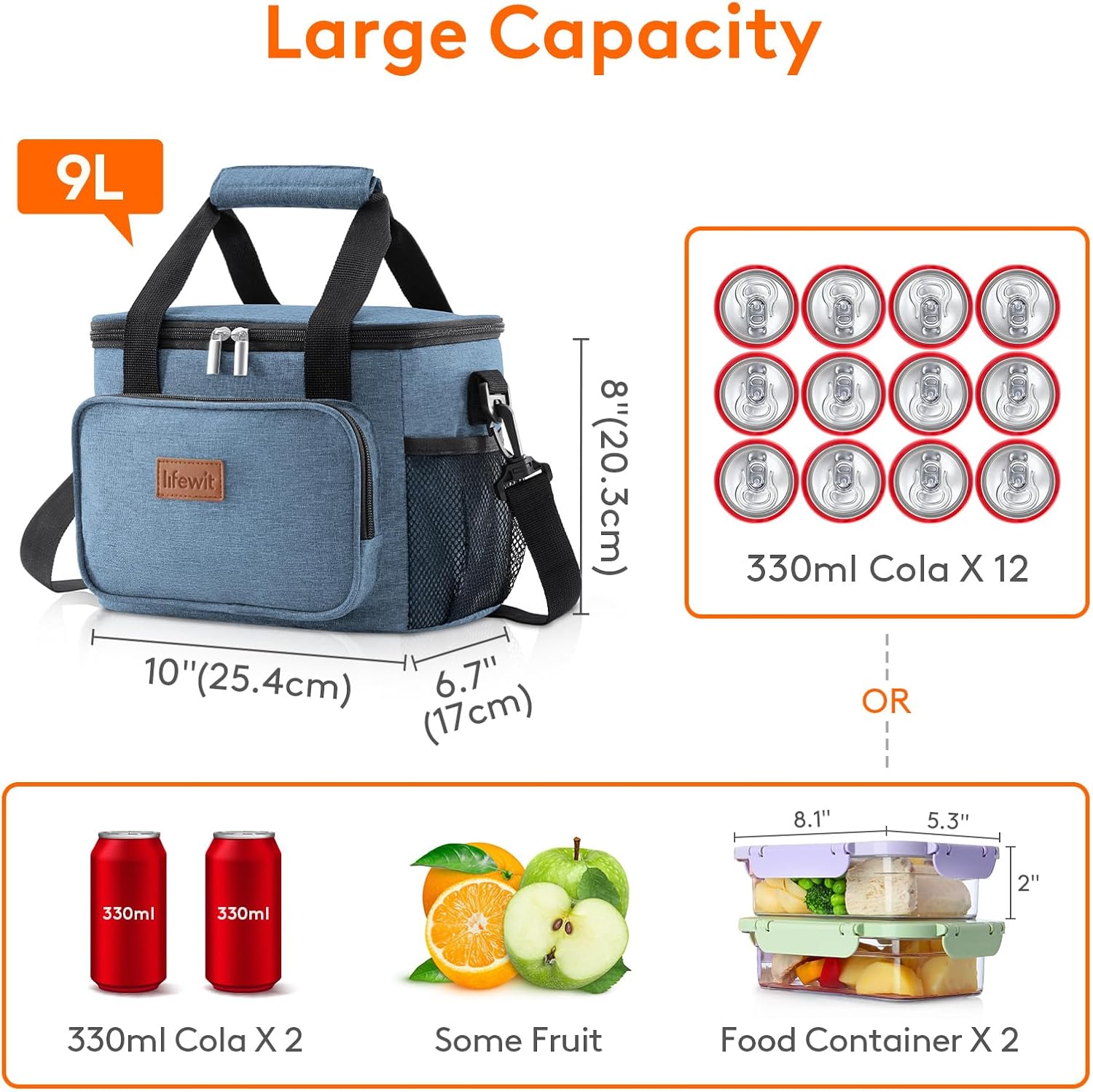 - Large Capacity: Dimensions - 10"(25.4cm) × 6.7"(17cm) × 8"(20.3cm). The maximum capacity of lunchbox for adults is 9L, and is spacious enough to store 12 cans of coke (330ml), or your lunch such as sandwiches, salad, snacks, drinks and fruits and so on. It is suitable for office, for work, picnic, beach, trip.