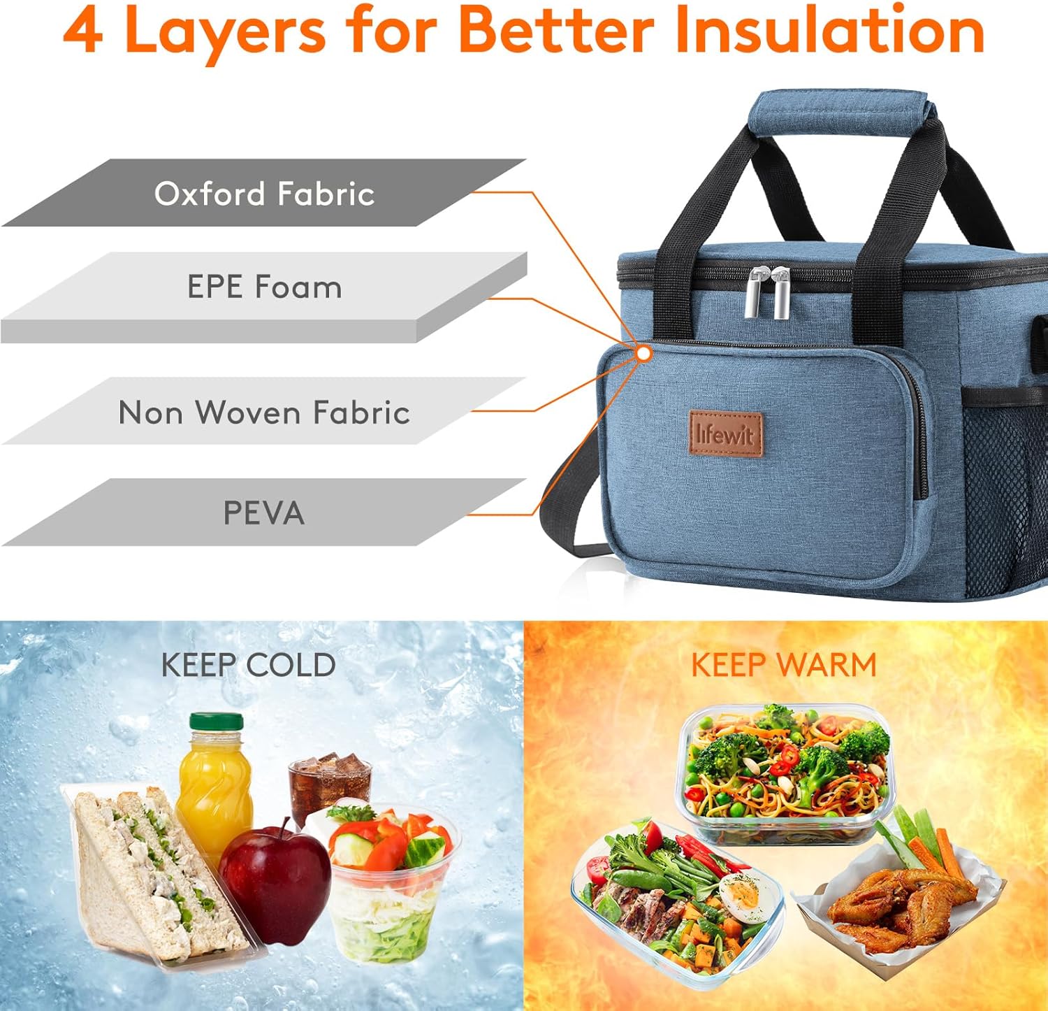 - Leakproof & Waterproof: The exterior of lunch box for men is constructed out of 600D water-resistant dirt-proof Oxford fabric for durability and water proofing and easy cleaning. Even when full with water and ice, it holds fruits and drinks well, will not leak at all.