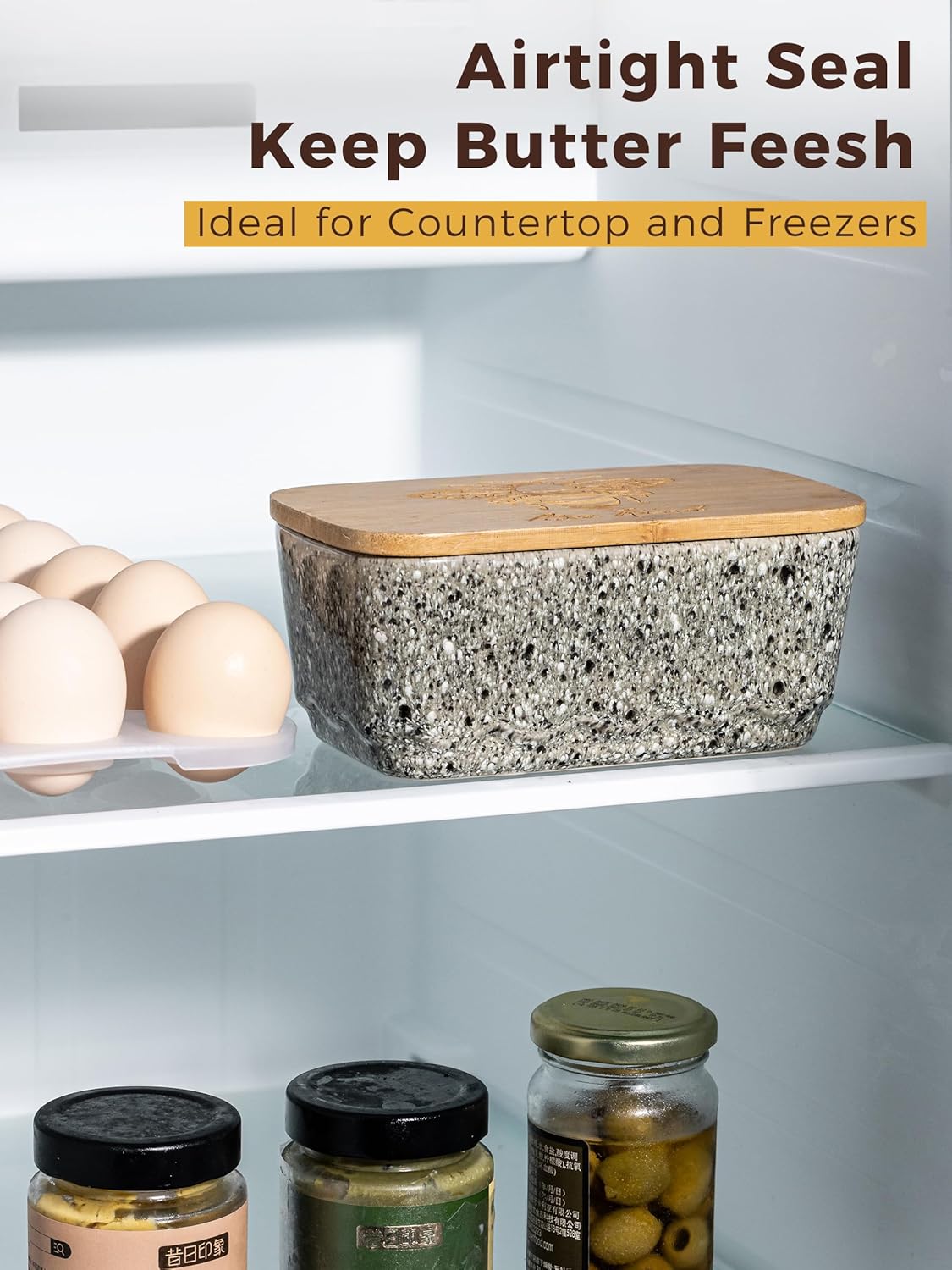 - Upgraded Butter Holder: The covered butter dish upgraded with high-quality double-layer silicone seals for superior freshness preservation, ensuring you enjoy the fresh taste every time