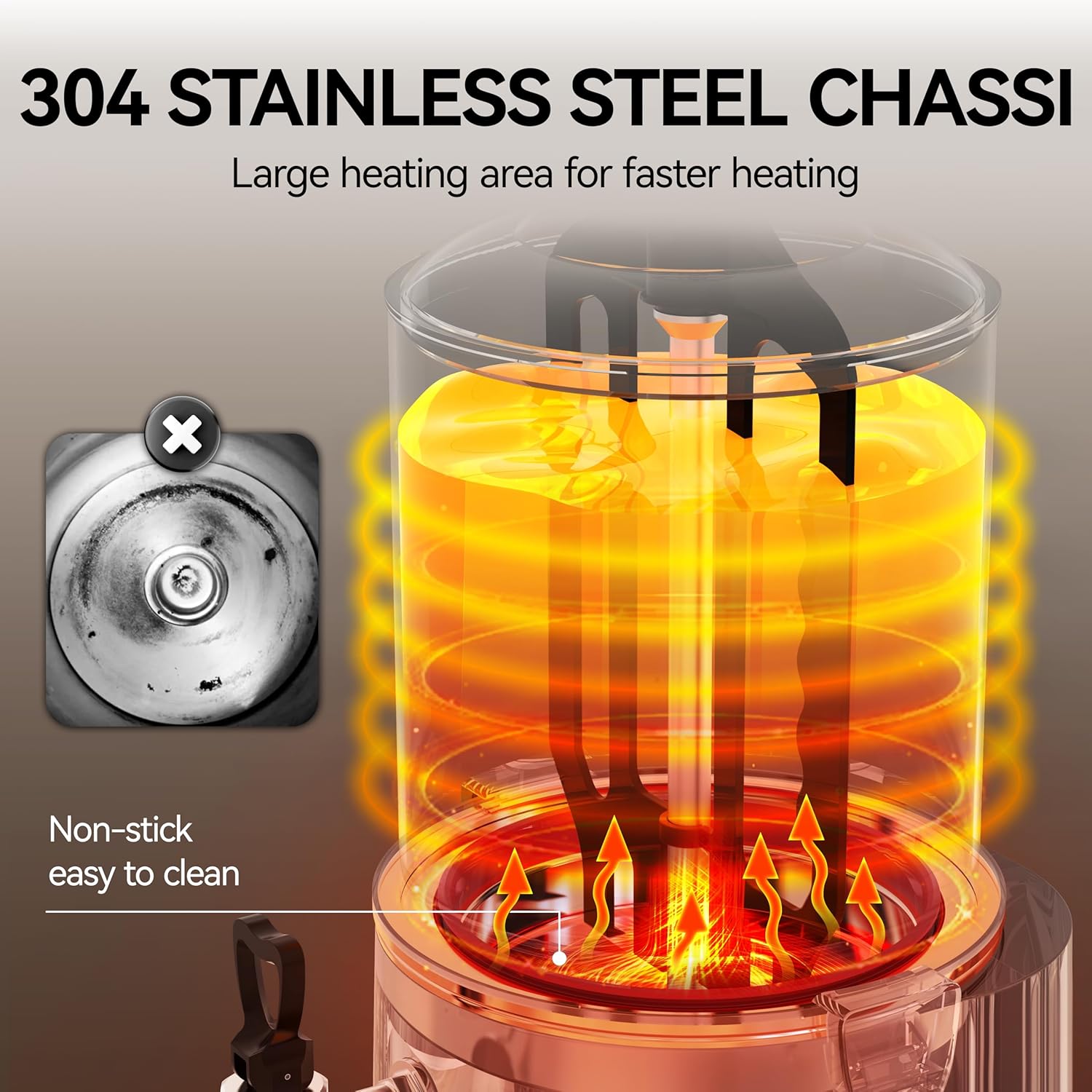 - 【Material assured】 The faucet is made of 304 stainless steel, which is not easy to rust; PVC food-grade mixing leaves and transparent cylinder guard your drinking health. Stainless steel heating plate, anti-scorch and anti-stick, easy to clean