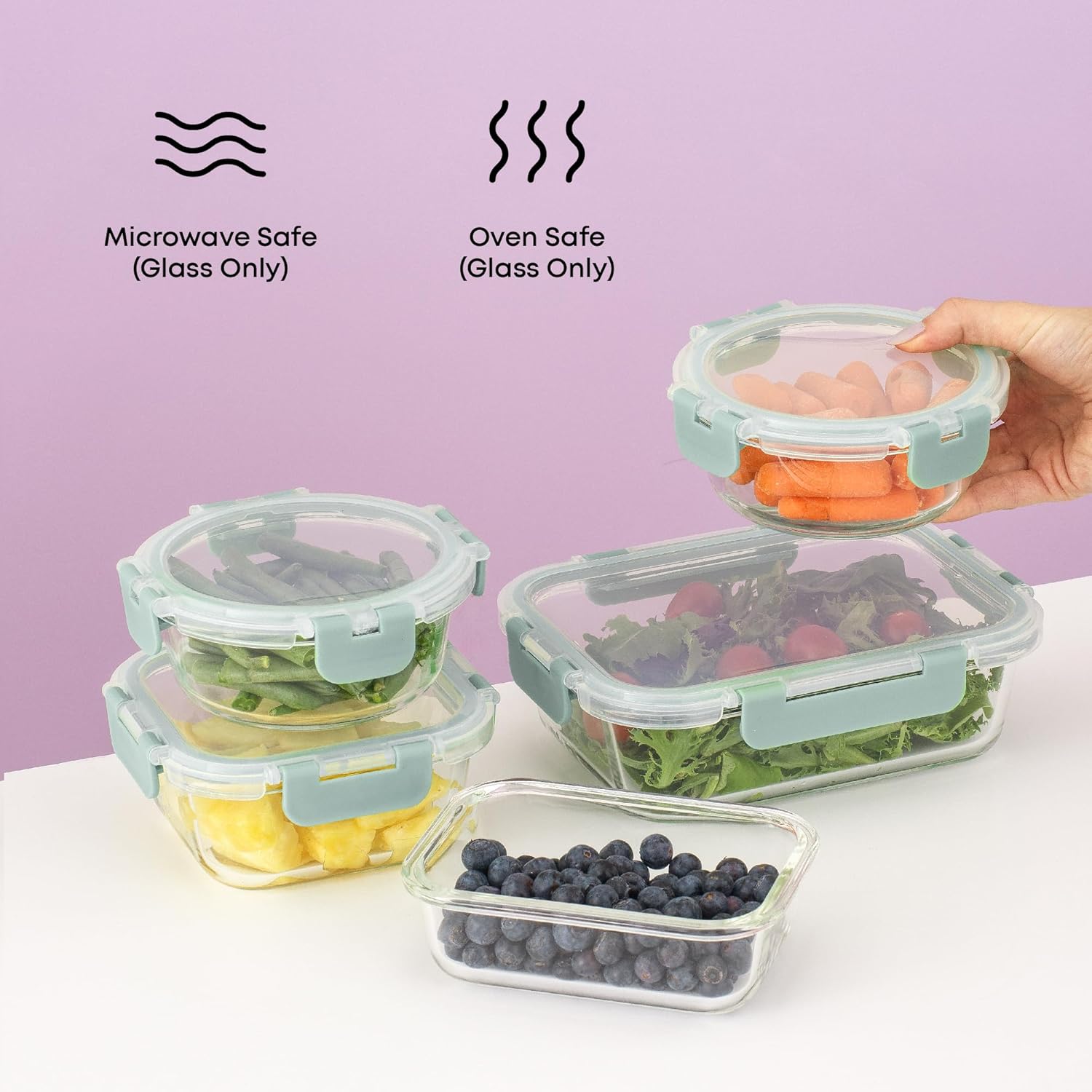 - VERSATILE GLASS FOOD STORAGE CONTAINERS WITH LIDS: Prep, stash, stack, store, and more with this glass meal prep container set! BPA-free and going from freezer to oven without breaking, these glass containers handle it all. With a variety of shapes and sizes, say hello to healthier meal prep.