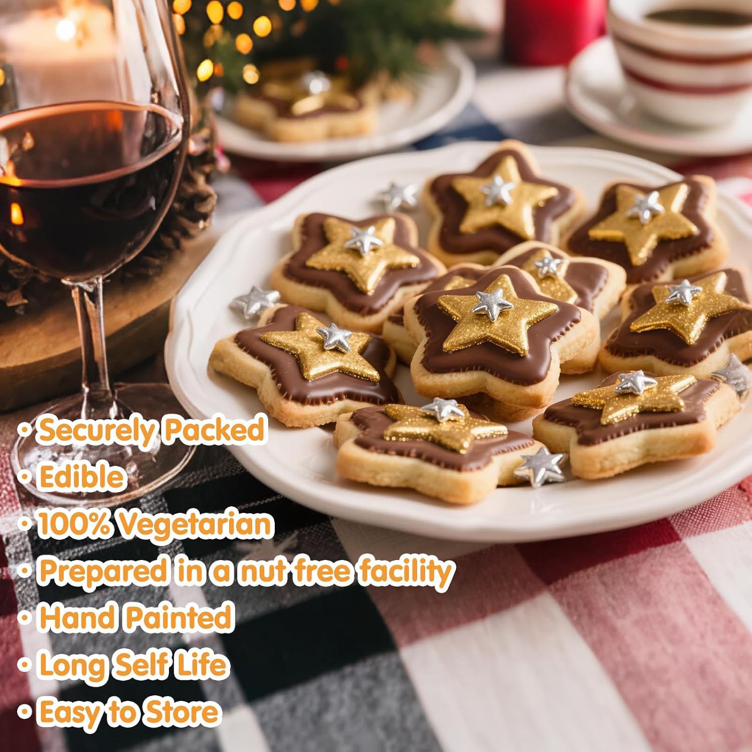 - Gold Star Sprinkles with food-grade raw materials:Preservative Free,Nut Free,Dairy Free,Chemical Free,Soy Free,Non-GMO.Produced using food-safe standards,the process does not come into contact with allergenic substances and uses Tamper-proof food label