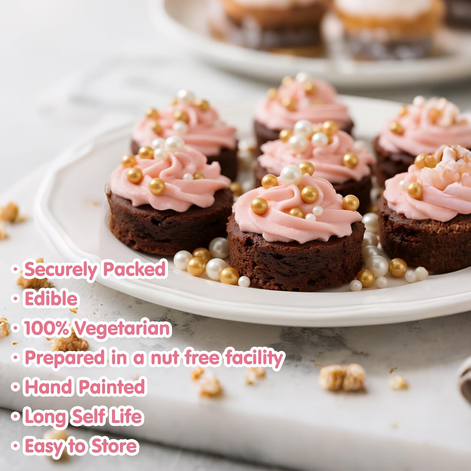 - Gold and White Pearl Sprinkles with food-grade raw materials:Preservative Free,Nut Free,Dairy Free,Chemical Free,Soy Free,Non-GMO.Produced using food-safe standards,the process does not come into contact with allergenic substances and uses Tamper-proof food label