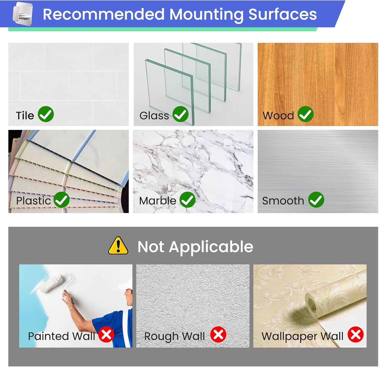 - 【Hole Free - Easy Installation】 No need to drill holes to damage the wall, tear off the adhesive backing protective film, press for 30 seconds to complete the installation, stick it as you go (wait 24 hours to hang items will make the adhesion stronger). Especially suitable for rented rooms, dormitories or do not want to damage the wall of the family, save time and effort more worry.