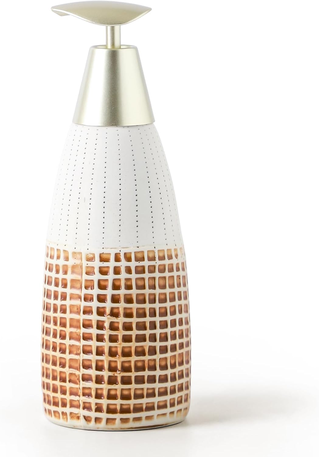 Ceramic Soap Dispenser with Plastic Pump – 12oz Refillable Liquid Dispenser for Bathroom, Kitchen, Office, Hotel, Airbnb, or Vacation Rental (Type F)