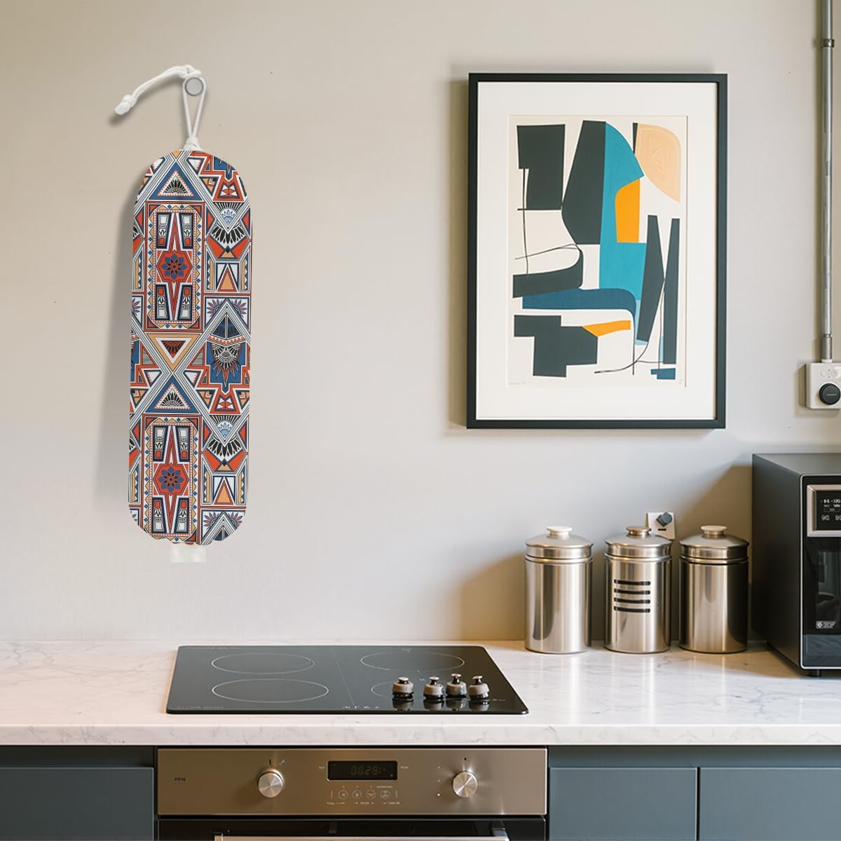 Vintage Ethnic Print Plastic Bag Holder, Wall Mount Grocery Bag Holder for Plastic Bags, Abstract Art Farmhouse Kitchen Pantry Decor Reusable Grocery Bags Organizer Storage Dispenser