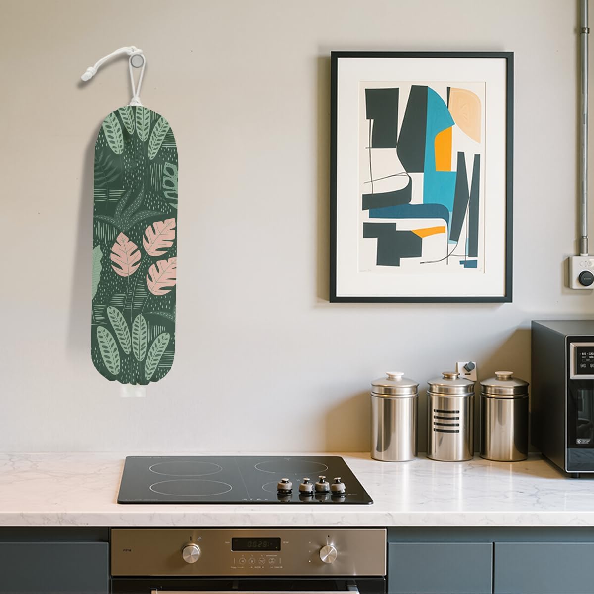 Tropical Green Leaves Plastic Bag Holder, Grocery Bag Holder for Plastic Bags, Nature Greenery Reusable Grocery Bags Storage Dispenser for Home Kitchen Decor, Plant Lover Gifts for Women