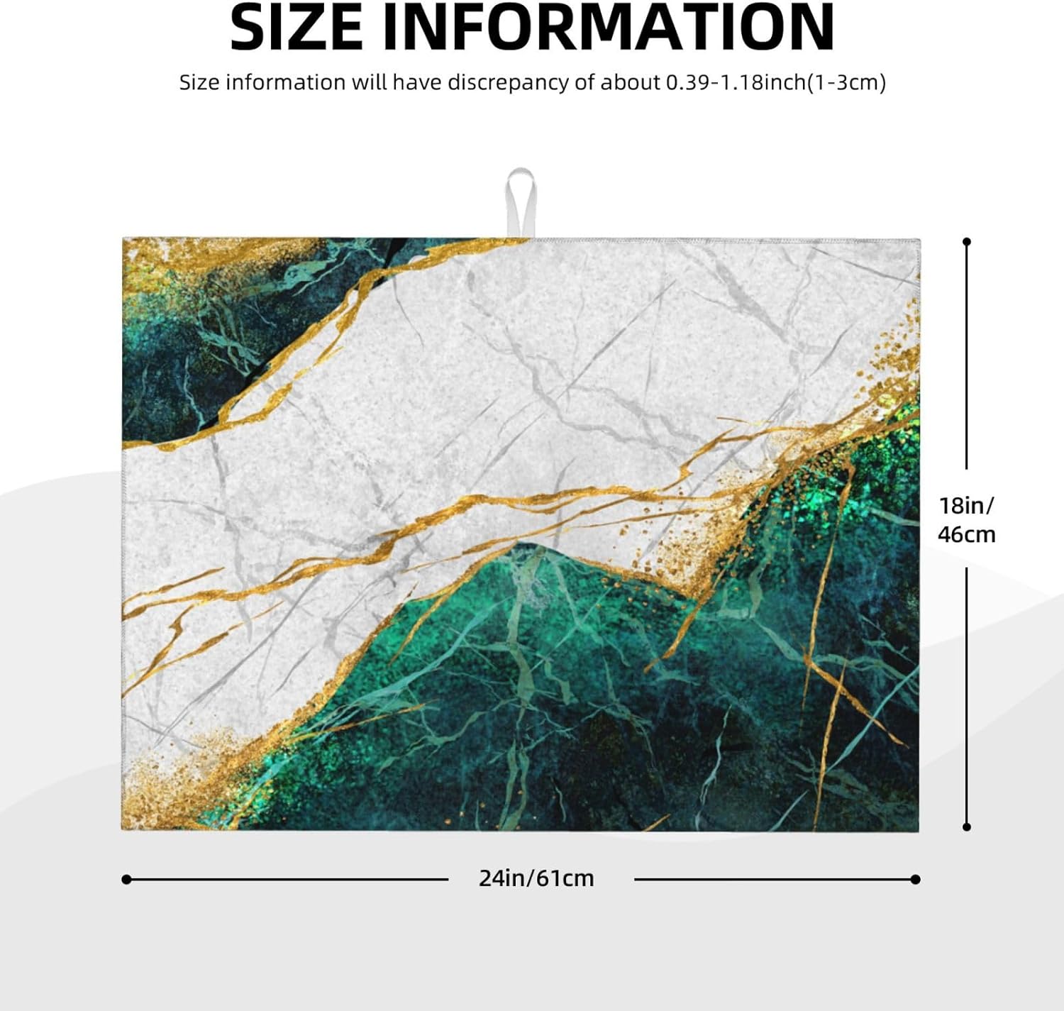 Marble Green Dish Drying Mat 18x24 for Kitchen Counter, Green White Modern Decorative Absorbent Coffee Mat Dish Drying Pad Coffee Bar Dish Drainer Rack Mat Drainer Mat
