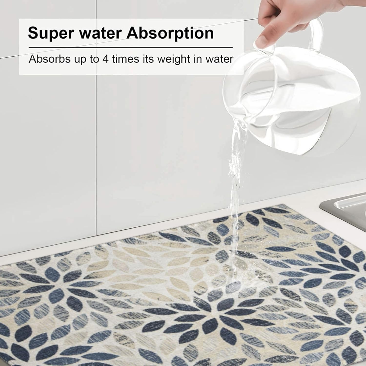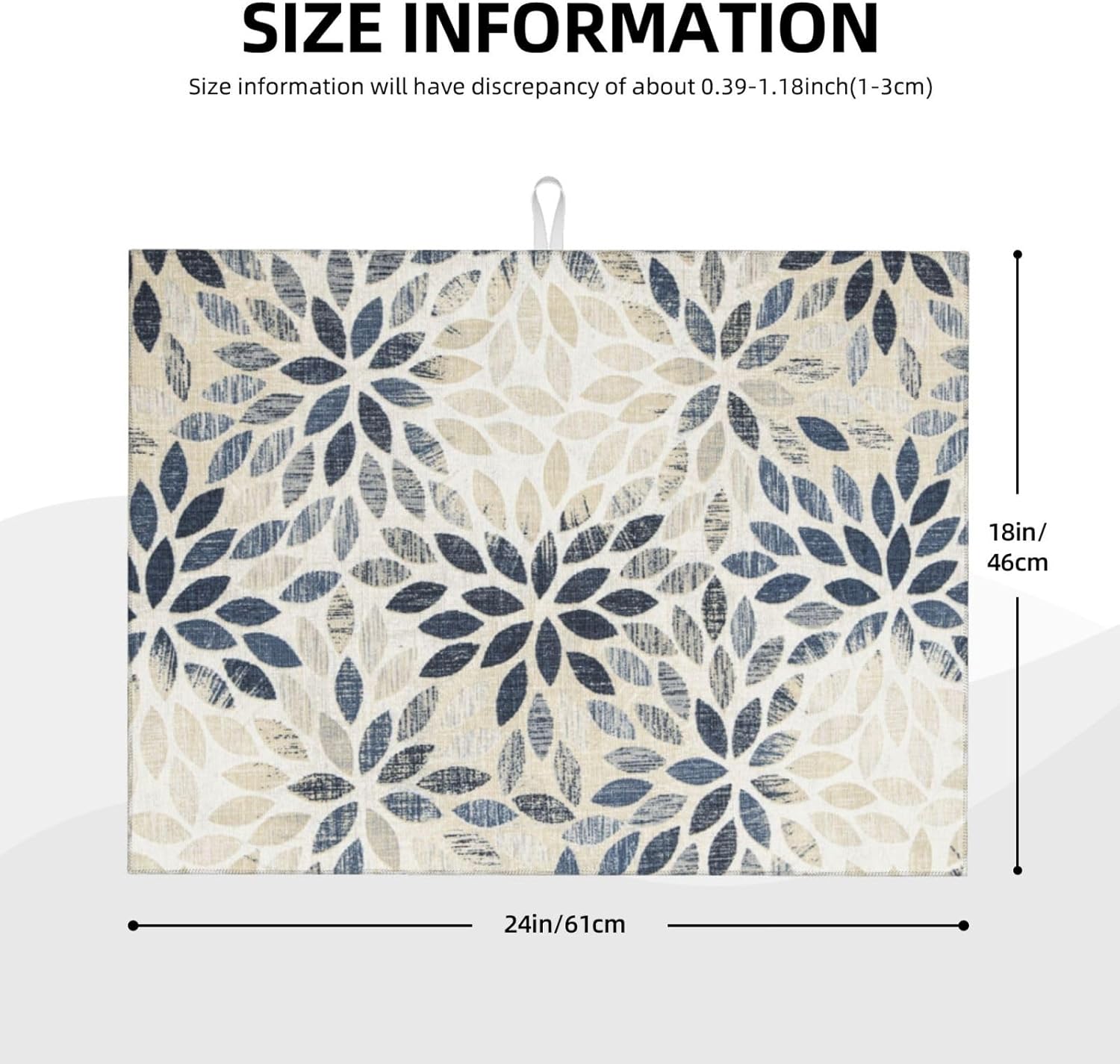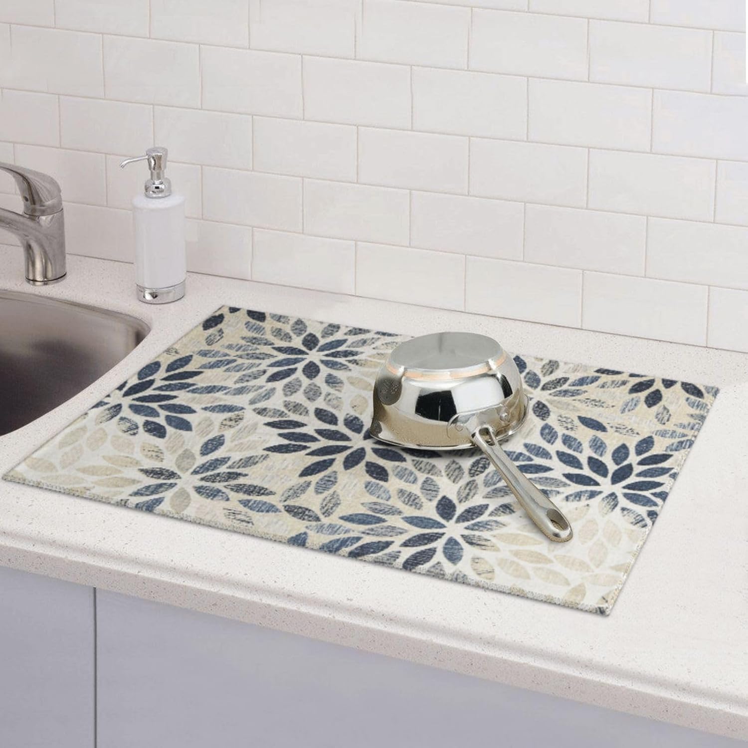 Dahlia Dish Drying Mat 18x24 for Kitchen Counter, Blue Floral Decorative Absorbent Coffee Mat Dish Drying Pad Coffee Bar Dish Drainer Rack Mat Drainer Mat