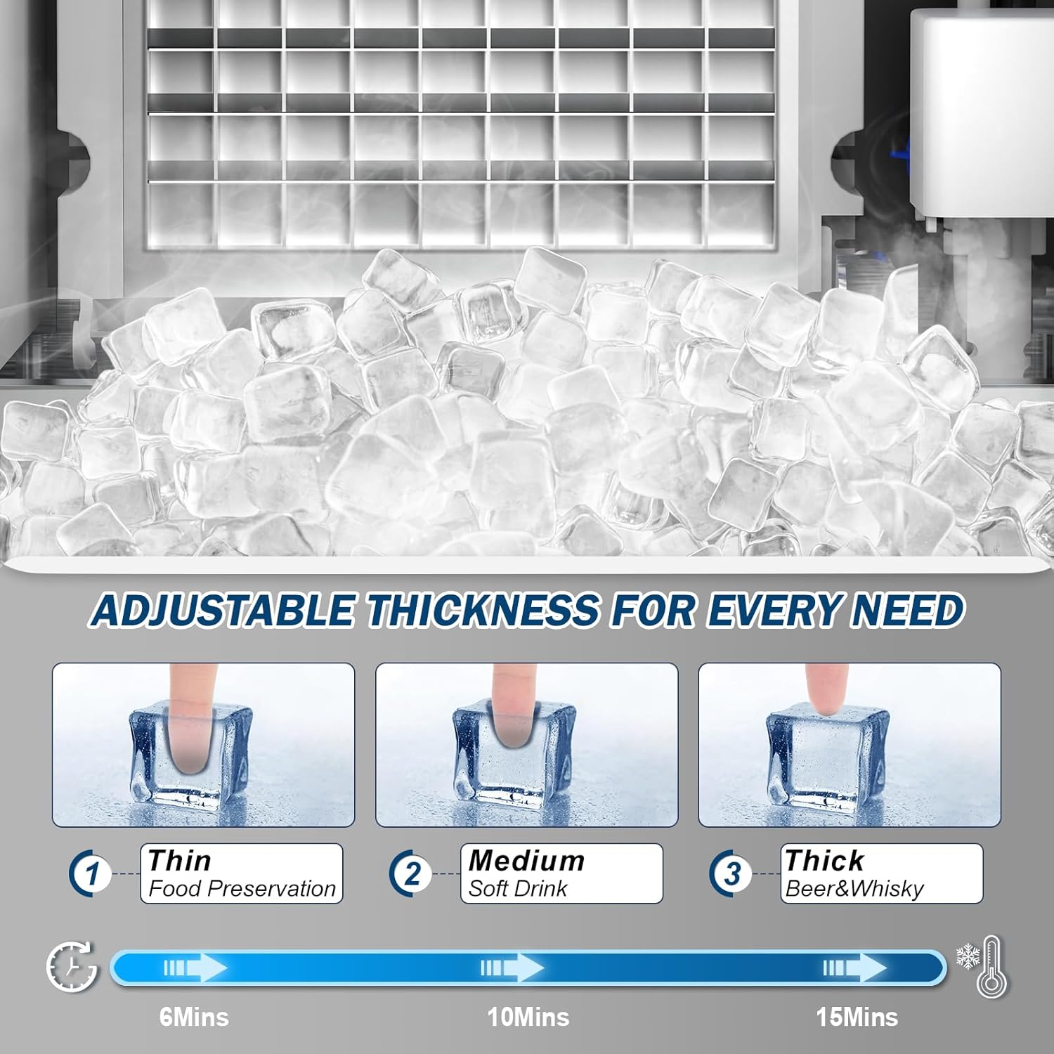 - 【Premium Construction & Food-Safe Design】Crafted with heavy-duty stainless steel, this ice maker features a thick foam insulation layer to slow down ice melt and a food-grade PP liner for safe, hygienic ice production. Built to meet health standards and stand up to everyday use.