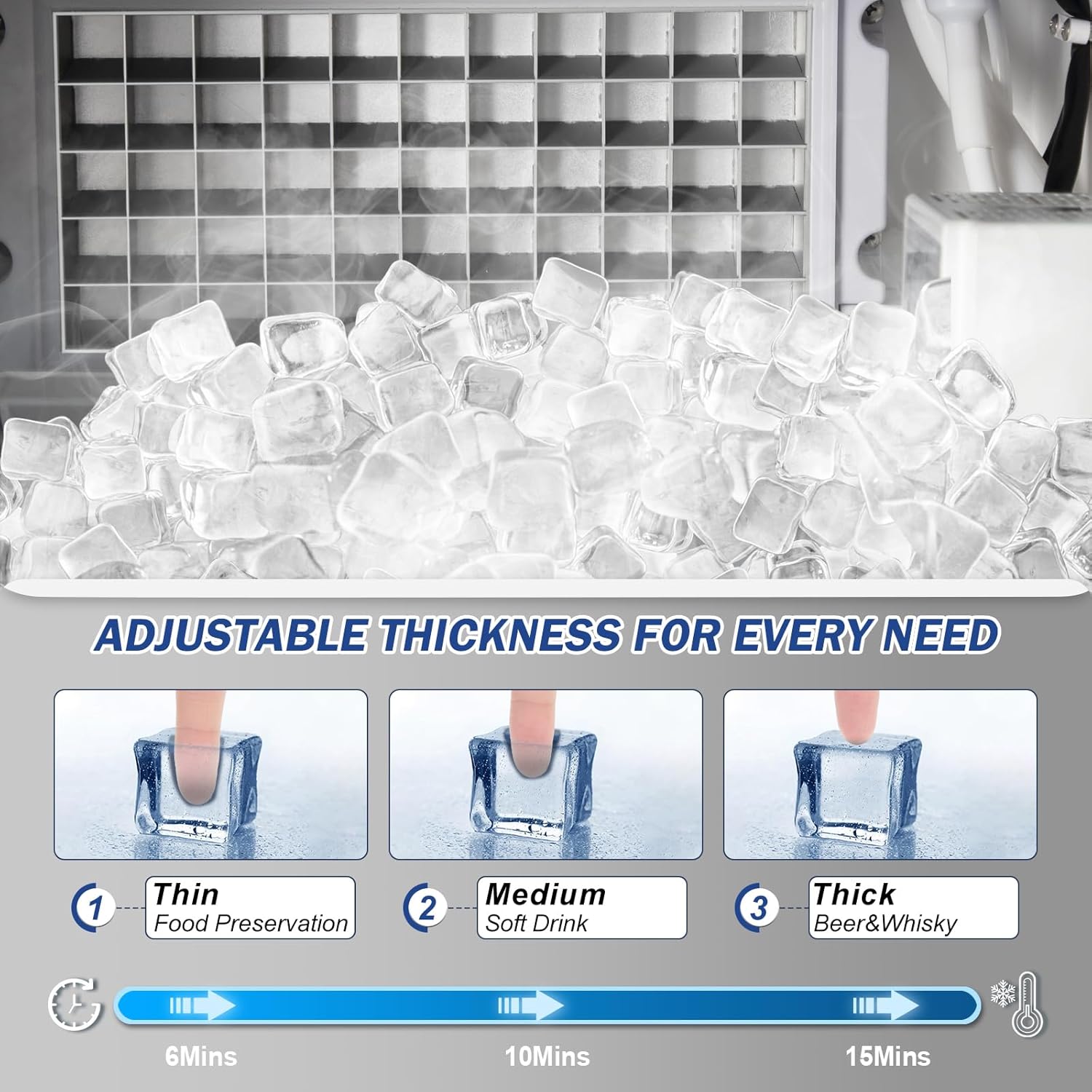 - Built to Last – Durable, Sanitary & Insulated - Made from heavy-duty stainless steel with a thick foam layer for insulation and a food-grade PP liner. Designed for long-term performance and hygienic ice production that meets safety standards.