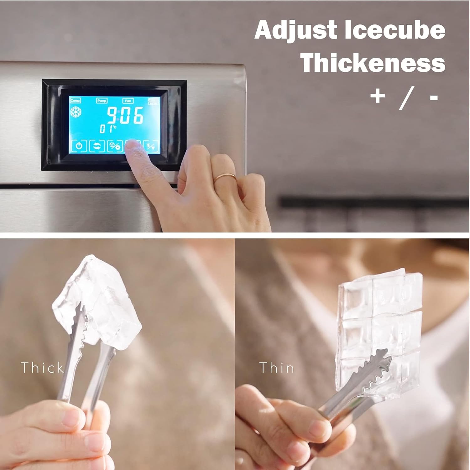 - 👍【LCD Intelligent Panel & One-Click Appointment & Automatic Cleaning】 With just a click on the user-friendly LCD panel, you can access a world of convenient features like 24-hour reservation, automatic self-cleaning, de-icing, and more. Plus, with adjustable settings for ice-making time and size, you can customize your ice to suit any occasion. Say goodbye to ice-making hassles and hello to perfectly chilled drinks every time!
