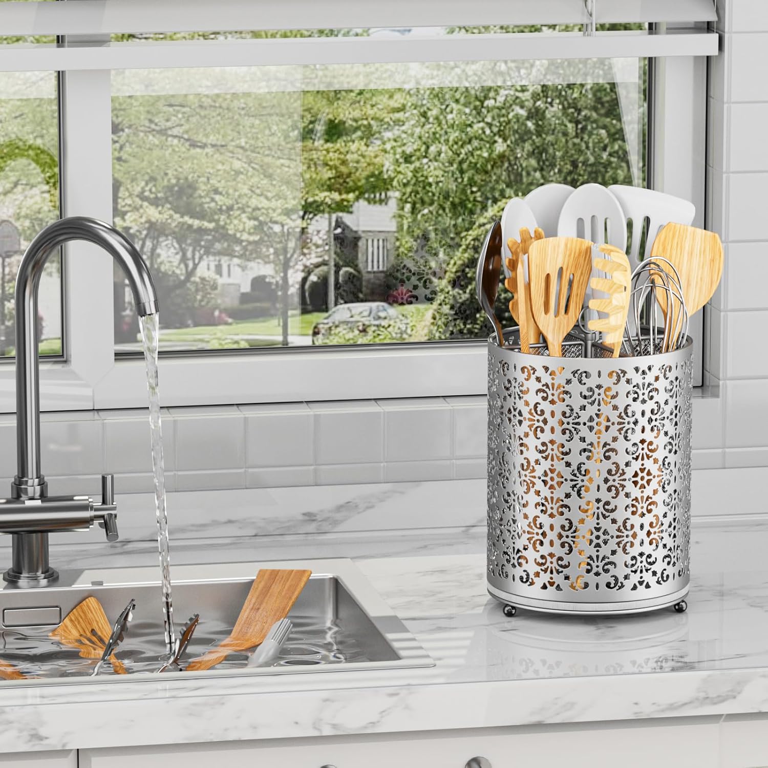 - Instant Setup, Space-Saving: Unbox and organize in just 3 seconds—no assembly required. Instantly reclaim counter space and banish kitchen clutter with this sleek, functional utensil holder! It grips counters during busy family cooking sprees.