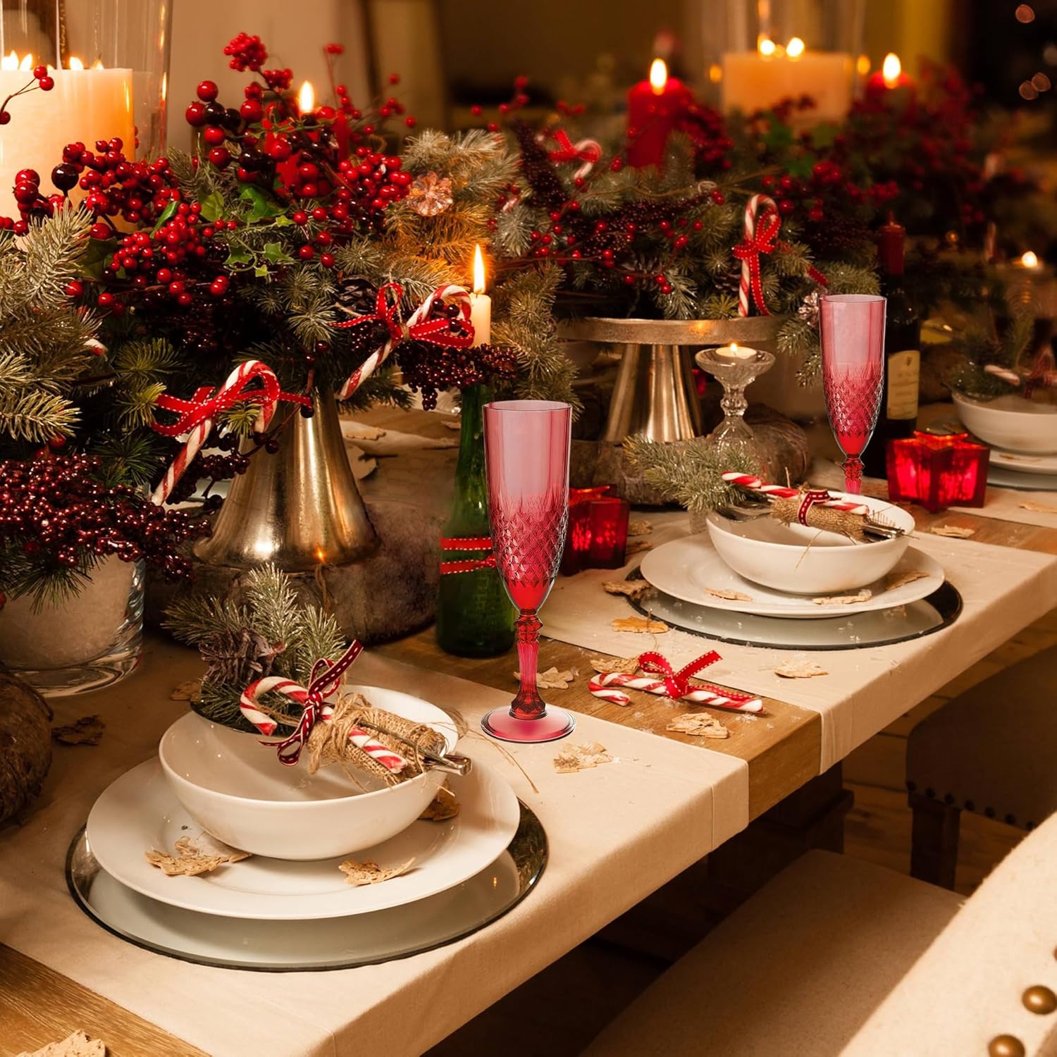 - Charming Set: Champagne flutes set include 24 retro-style dark red champagne plastic wine glasses, providing ample quantity to meet your daily use and replacement needs. A suitable champagne cup is the icing on the cake. Plastic wine glasses not only carry the wine, but also carries the laughter and blessings