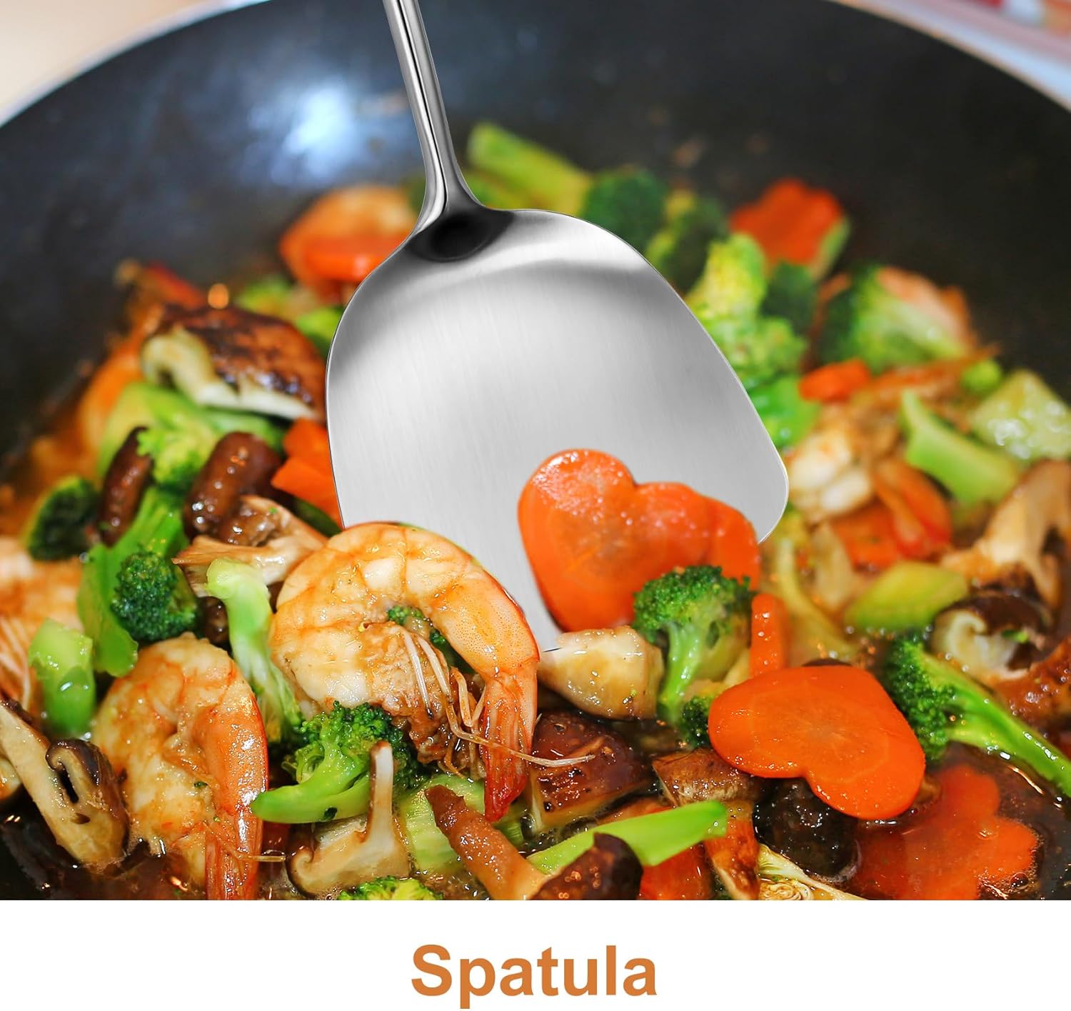 - VERSATILE FOR ANY OCCASION: This professional stainless cooking utensils set is perfect for home cooks and professionals alike. Whether you're using carbon steel or cast iron woks, this set is great for home use, commercial kitchens, restaurants, hotels, and picnics