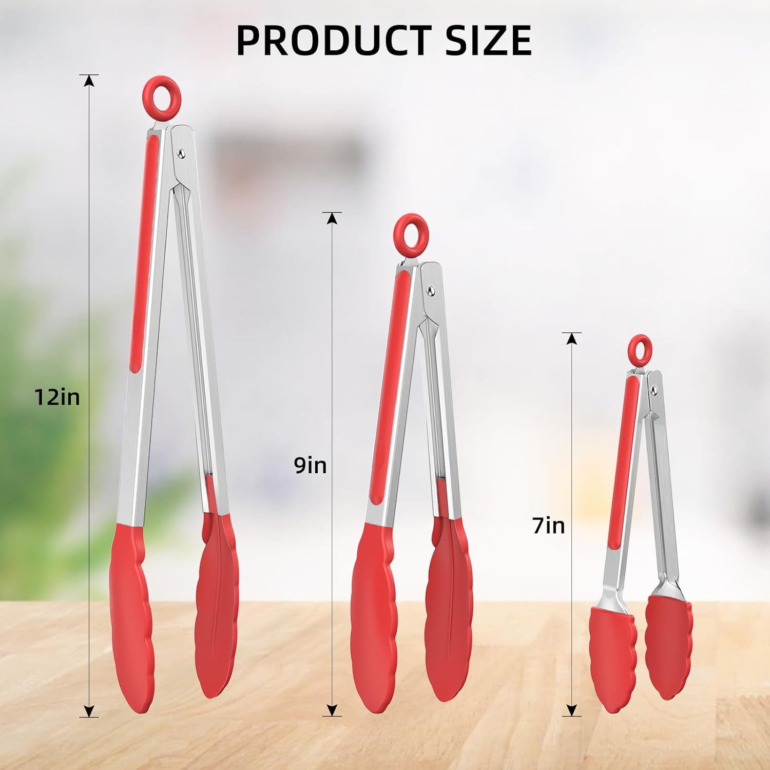 NileHome Tongs for Cooking, Professional Stainless Steel Cooking Tongs – Heat-Resistant for Grilling, BBQ, Serving Salad, Pasta, and Kitchen Use, Dishwasher Safe, Set of 7" 9" 12", Red