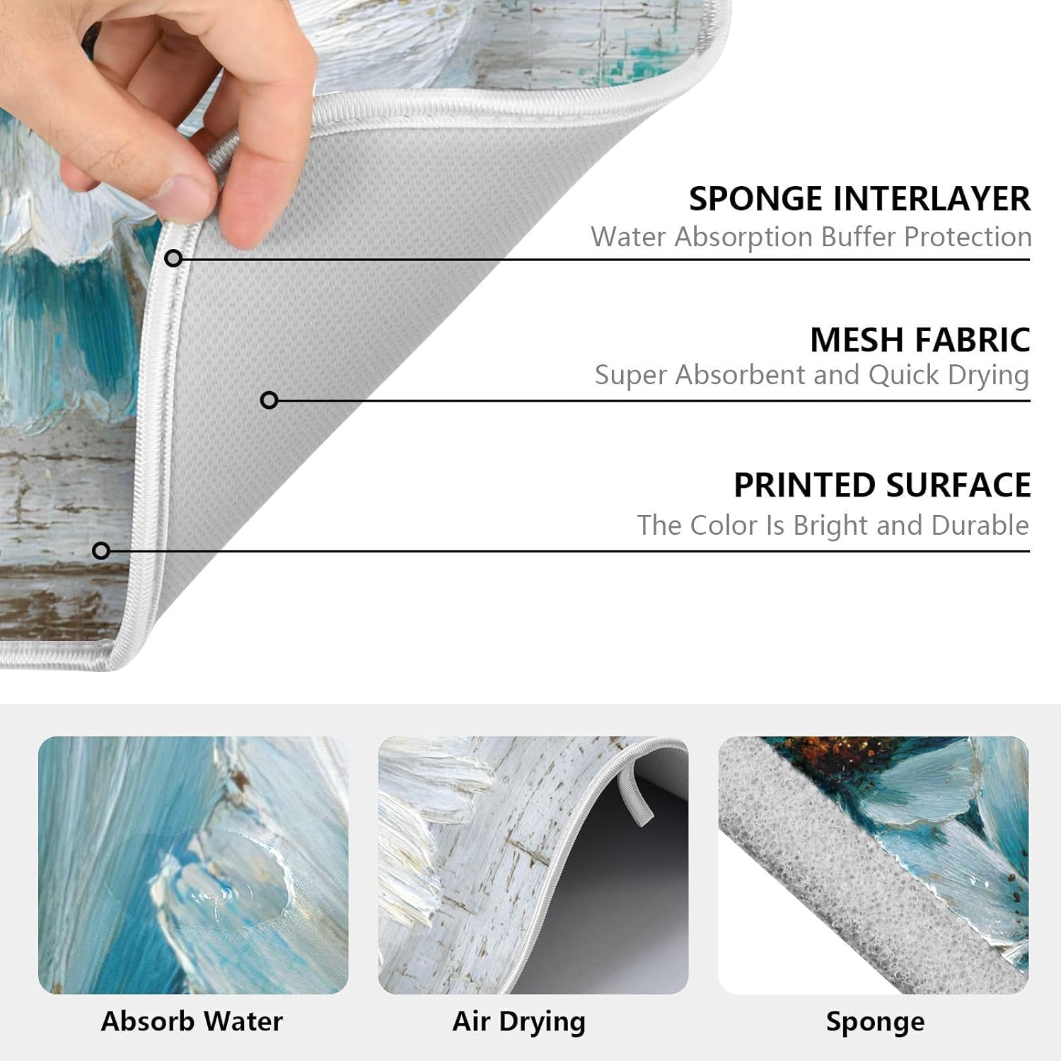 Rustic Teal White Daisy on Vintage Wooden Dish Drying Mat for Kitchen Counter Absorbent Microfiber Small Drying Pad Dish mats for Kitchen Countertops 16 x 18 Inch