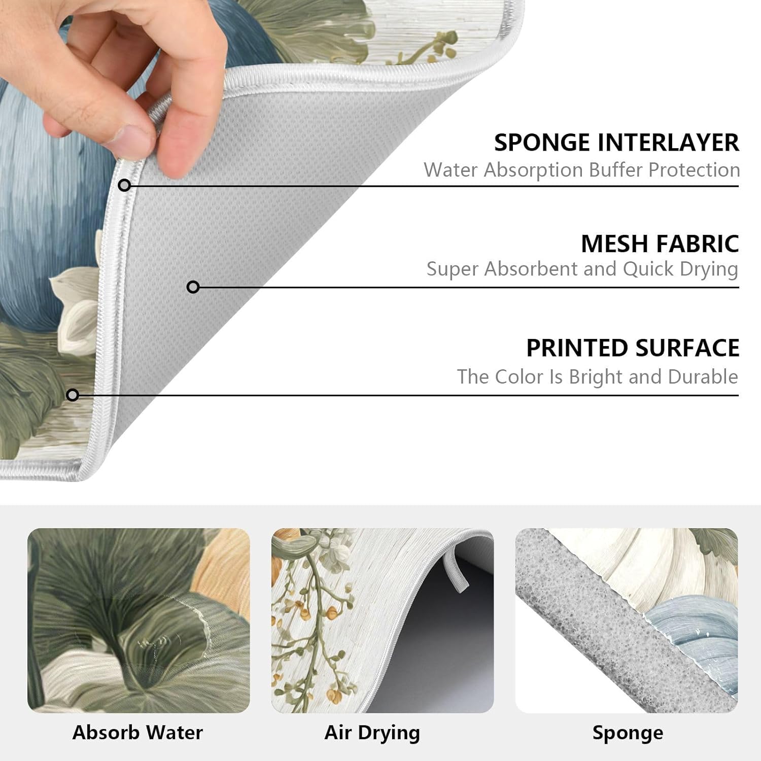 Fall Blue Orange Grey Pumpkin Thanksgiving Dish Drying Mat for Kitchen Counter Absorbent Microfiber Large Drying Pad Dish mats for Kitchen Countertops 18 x 24 Inch