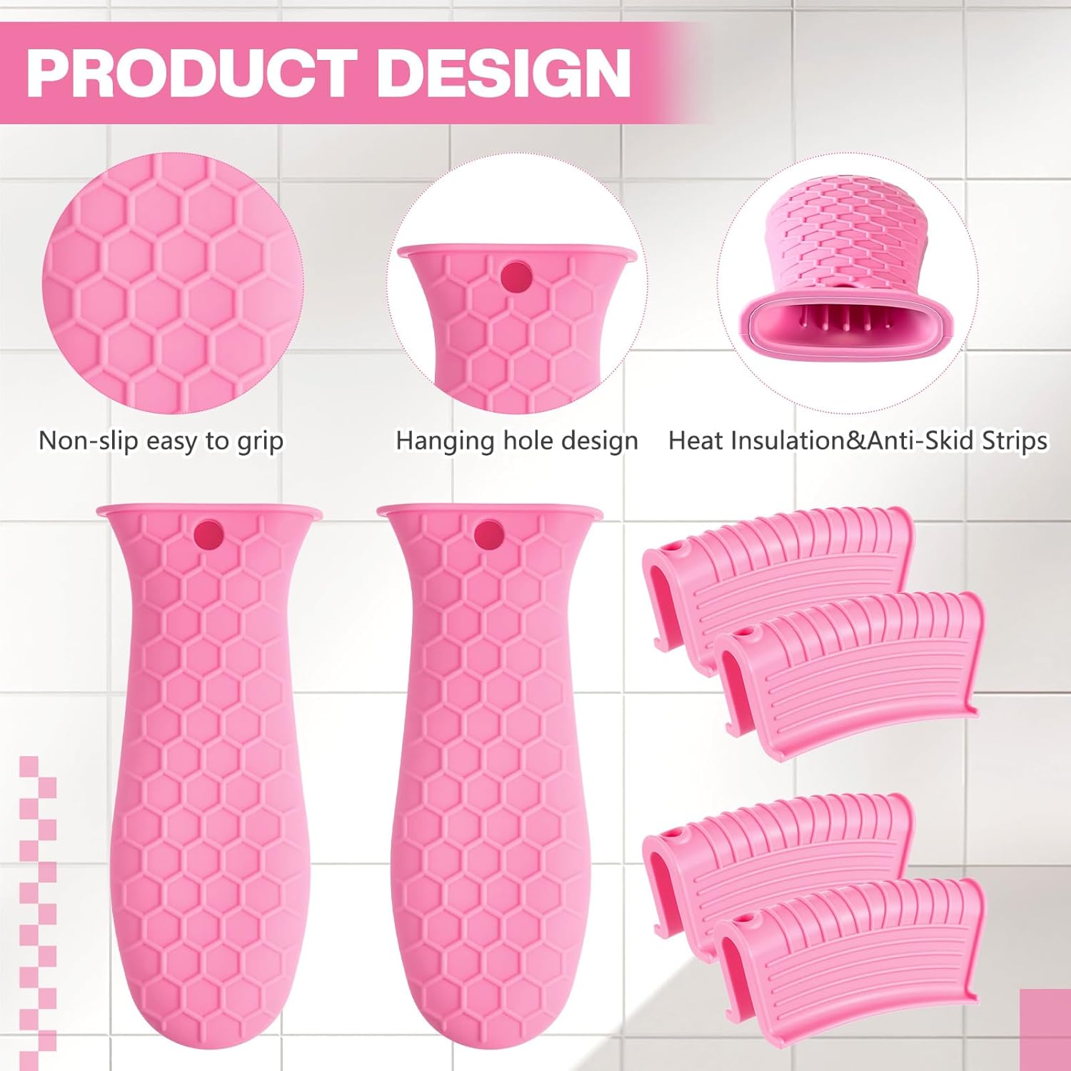 - Package Content: there are 4 pieces of silicone hot handle holders that come in pink, 4 pieces of silicone assist handle holders available in pink, enough quantity and classic style enough for your daily use, can be changed and shared, and easy to find; Suitable for using at home, travel or camping, nice gift for Mother's day, birthday, holidays, housewarming, chef and hostess