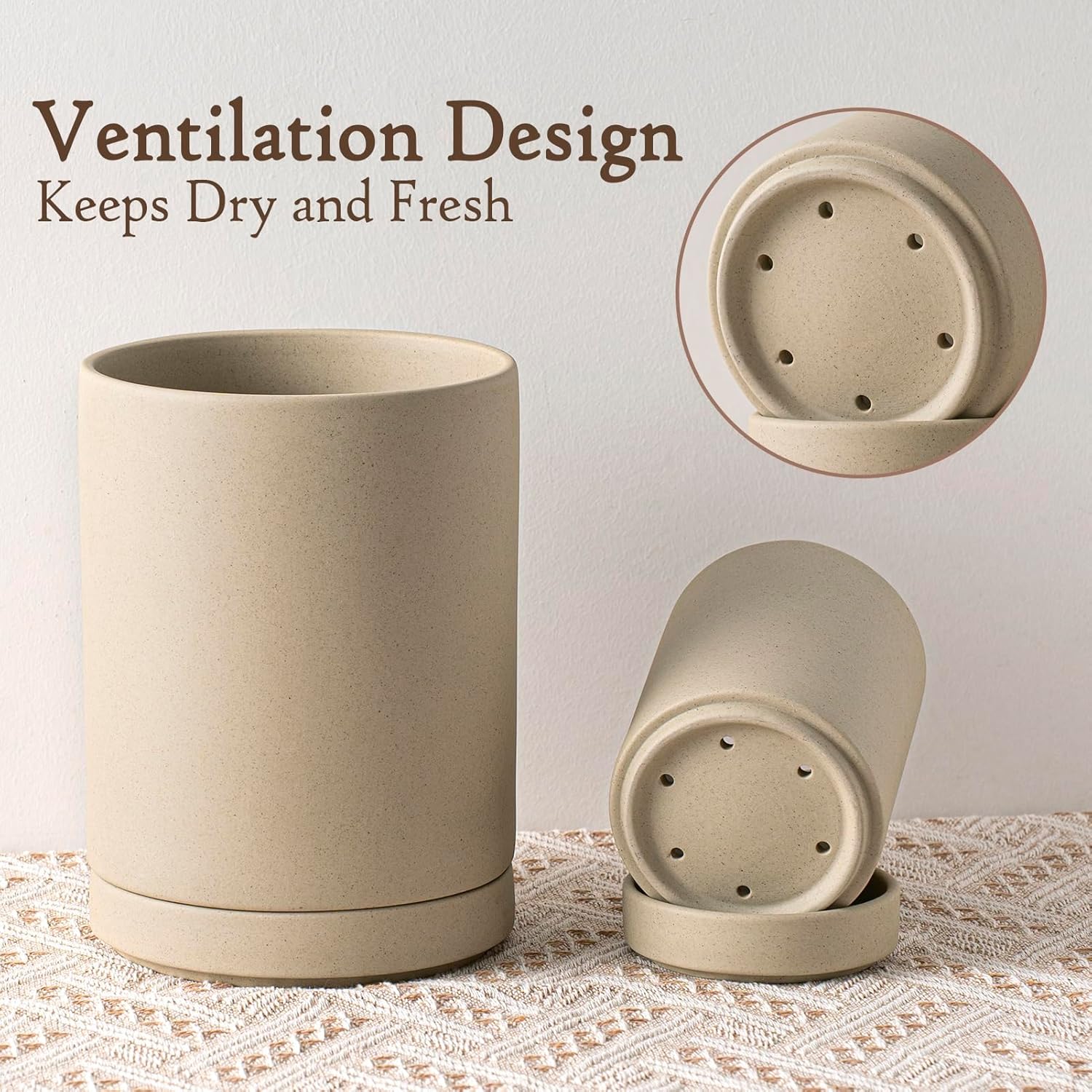 Utensil Holder, 7.3" Ceramic 2-in-1 Utensil Holder Set with Base for Countertop, Cooking Utensil Crocks for Kitchen Counter, Organizer for Spatulas & Spoons, Farmhouse Decor, Pottery Clay