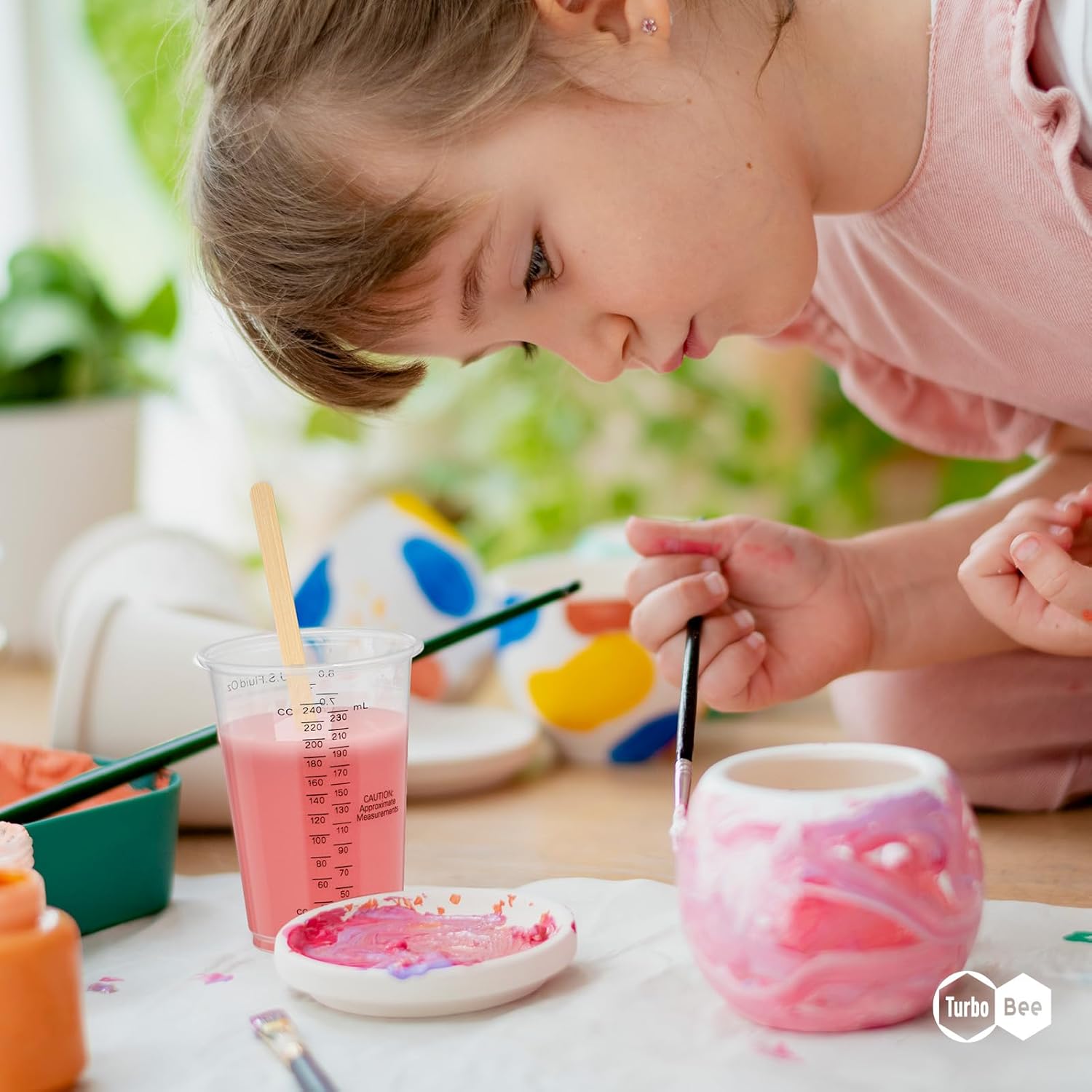 Turbo Bee Plastic Measuring Cups 8OZ,100 PACK Disposable Mixing Cups with 100 Mixing Sticks,Paint Graduated Measuring Tumblers for Epoxy Resin, Paint Mixing, Art DIY