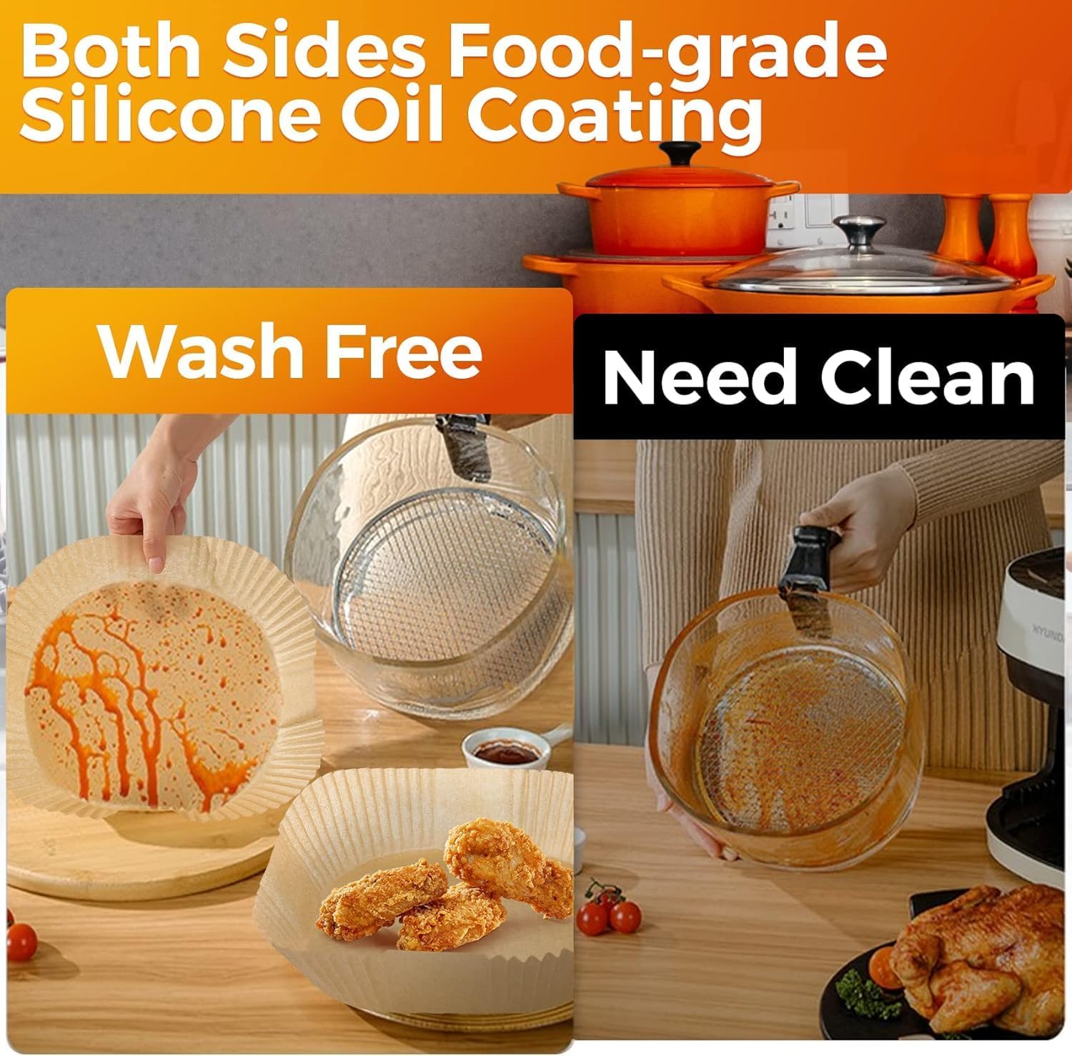 - Premium Material: Our air fryer basket liners are crafted from 100% food-grade parchment with a silicone oil coating, making these disposable square liners waterproof, oil-proof, and nonstick. Enjoy healthy, confident cooking