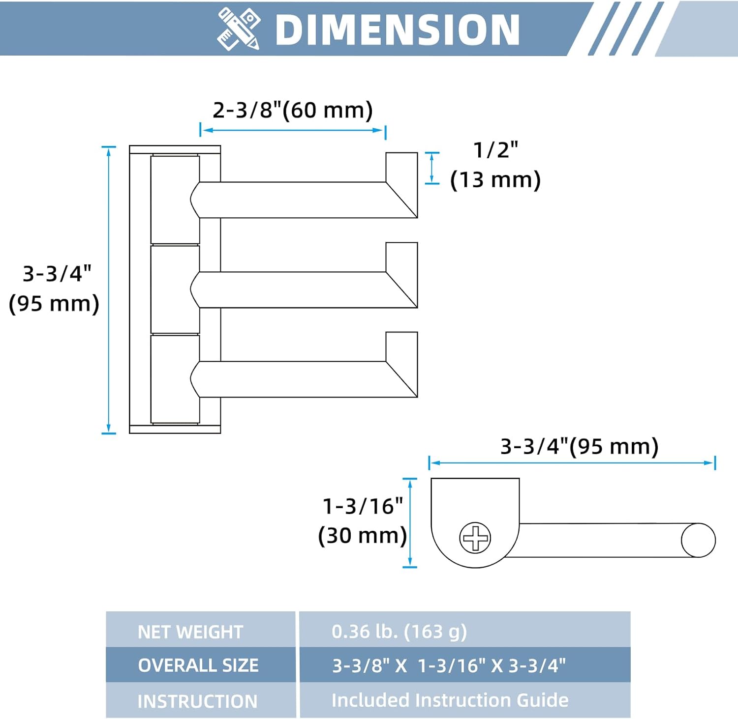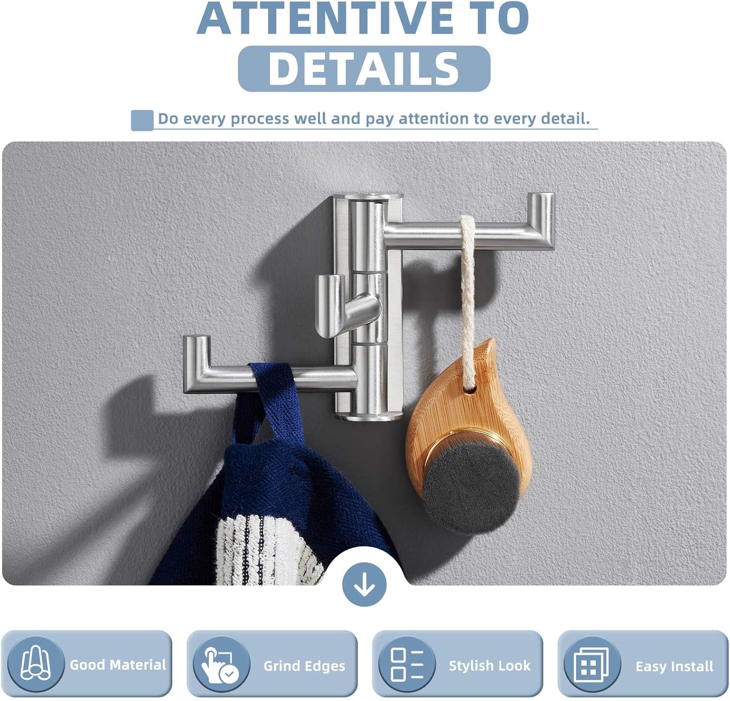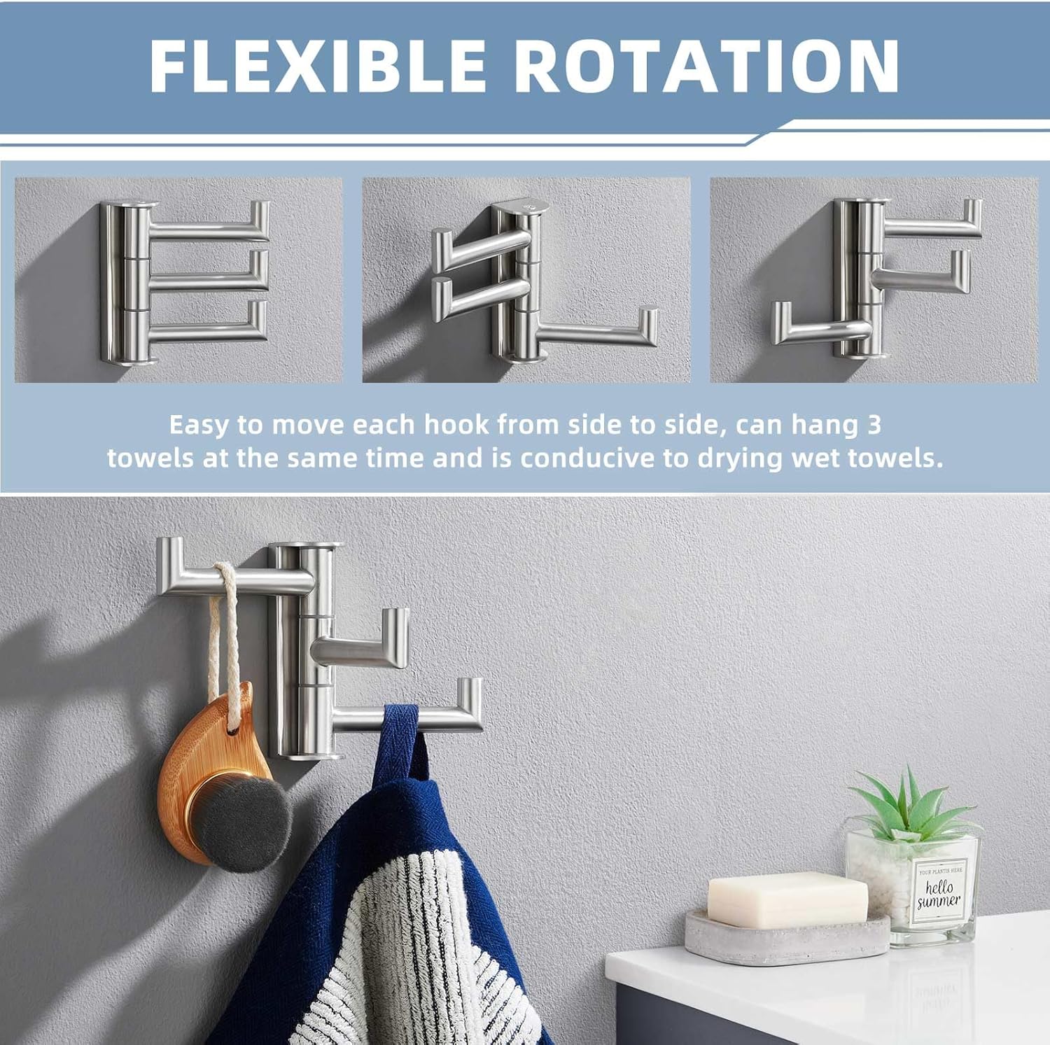 Suyar Bathroom Towel Hook 3 Arms, SUS 304 Stainless Steel Swivel Coat Robe Holder, Towel Hanger Wall Mounted, Brushed Nickel
