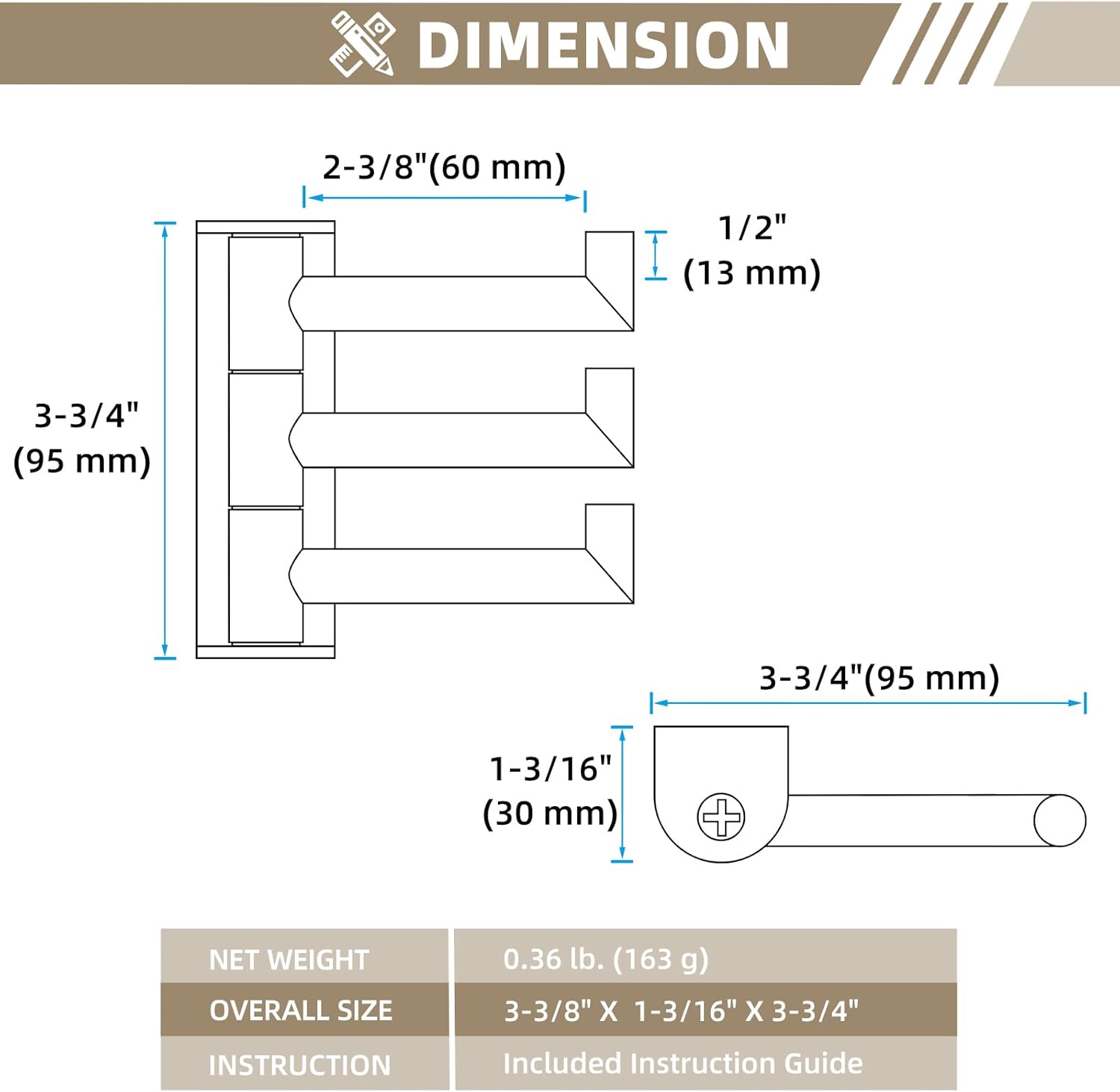 - QUIET & SMOOTH ROTATION: equipped with built-in rubber gaskets, 3 swivel arms rotate quietly, minimizing metal-on-metal friction for long-lasting durability and noise-free operation