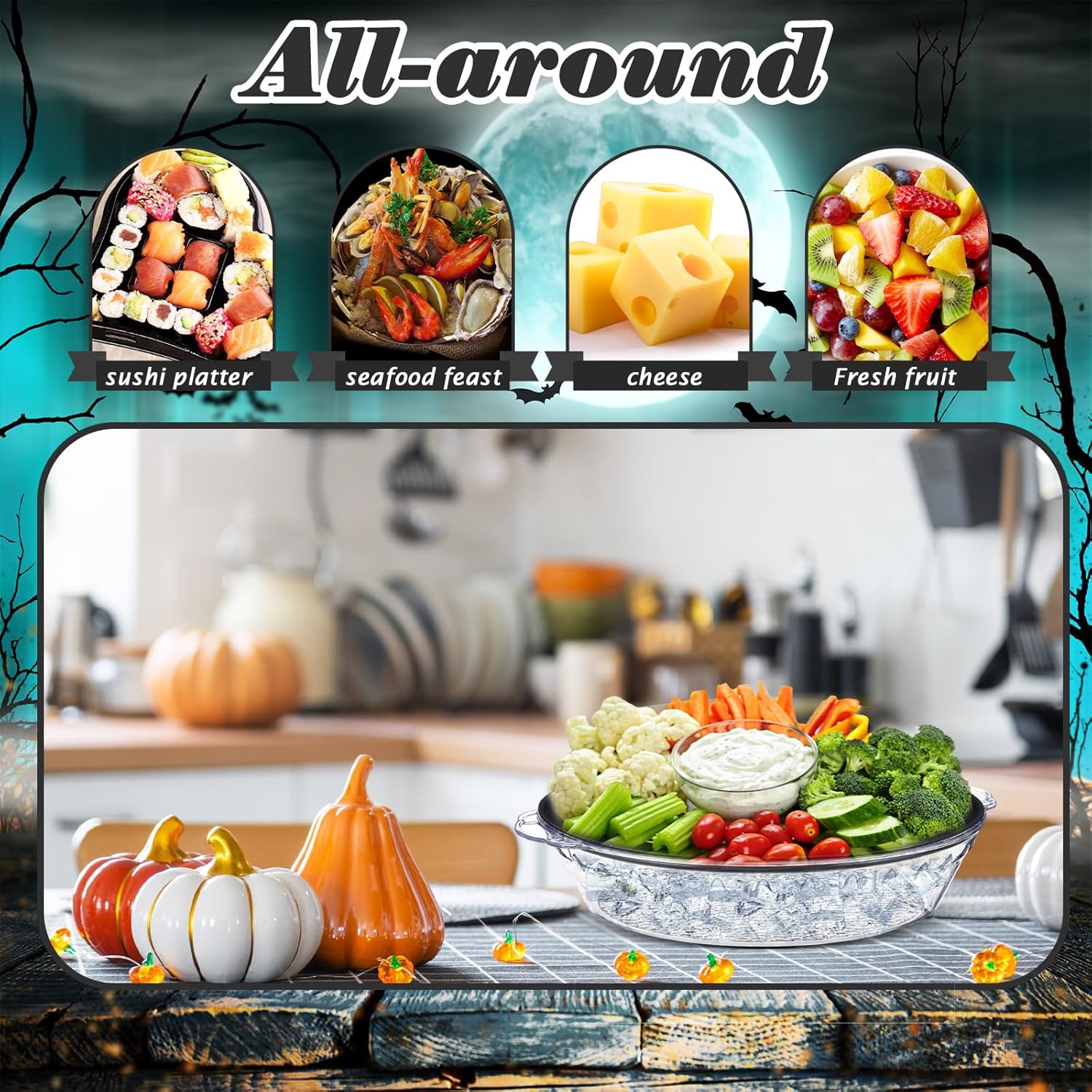 - Versatile Usage: this veggie trays for serving for party is suitable for family gatherings, company events, cookout, BBQ, picnic, camping; Elegant looking food cooler for any type of indoor or outdoor parties; Ideal for cooling food outside