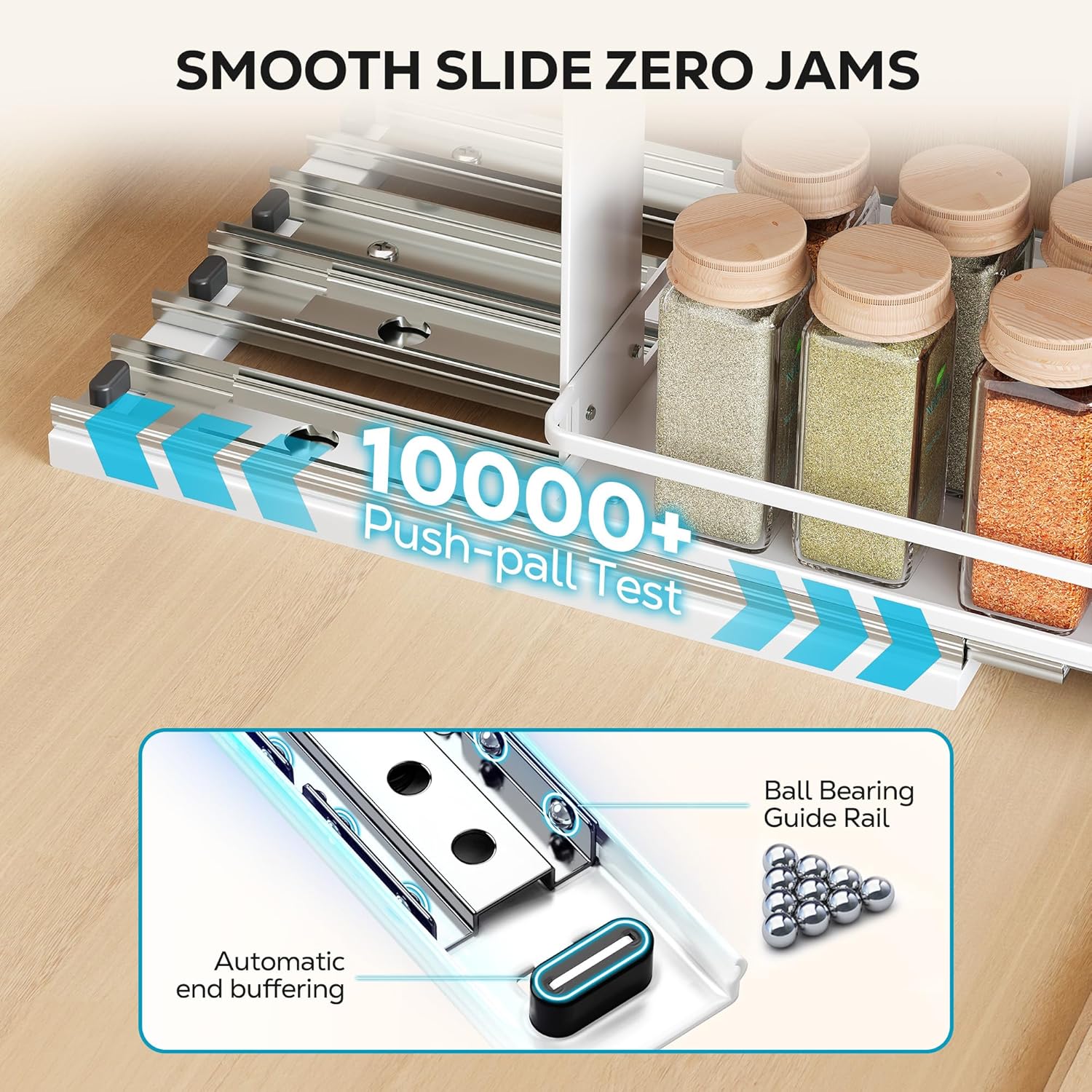 Nieifi Pull Out Spice Rack Organizer, 2 Tiers, White, Spice Organization for Cabinet, Height Adjustable, Easy to Install