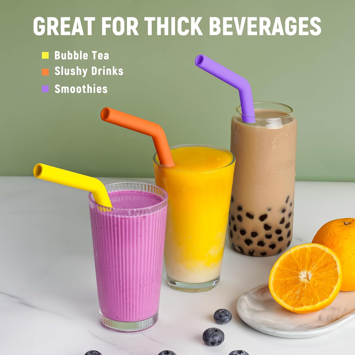 - Perfect for Thick Drinks: No more struggling to enjoy your favorite thick beverages! Our reusable silicone straws are specially designed for thick drinks like smoothies and bubble tea. Whether it’s a creamy milkshake or chunky tapioca pearls in boba, these straws make sipping effortless.