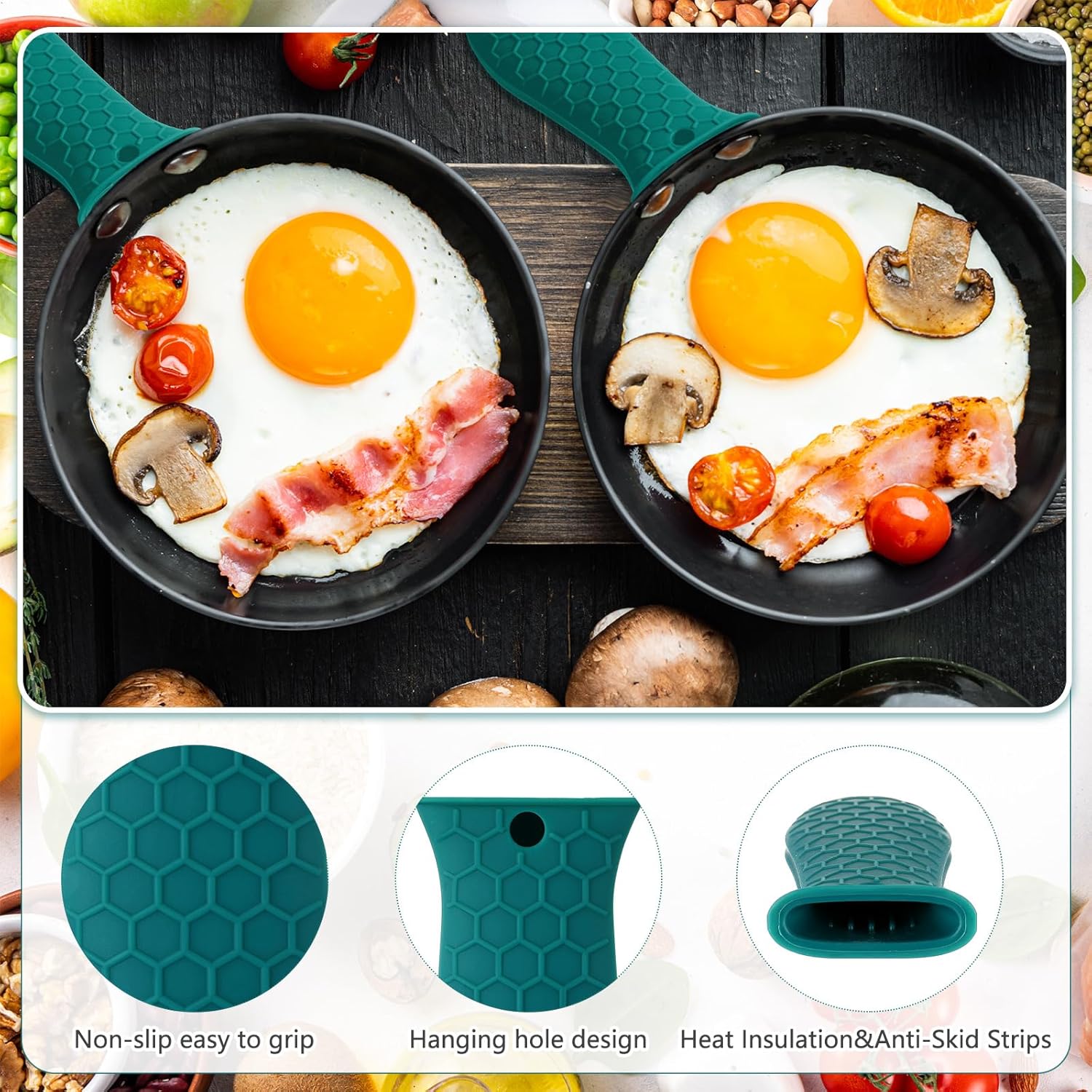 Patelai 2pcs Silicone Handle Cover for Cast Iron Skillet Kitchen Silicone Handles for Pots and Pans Non-Slip Pot Holder Sleeve for Fry Pan Griddles Metal Aluminum Cookware(Green)