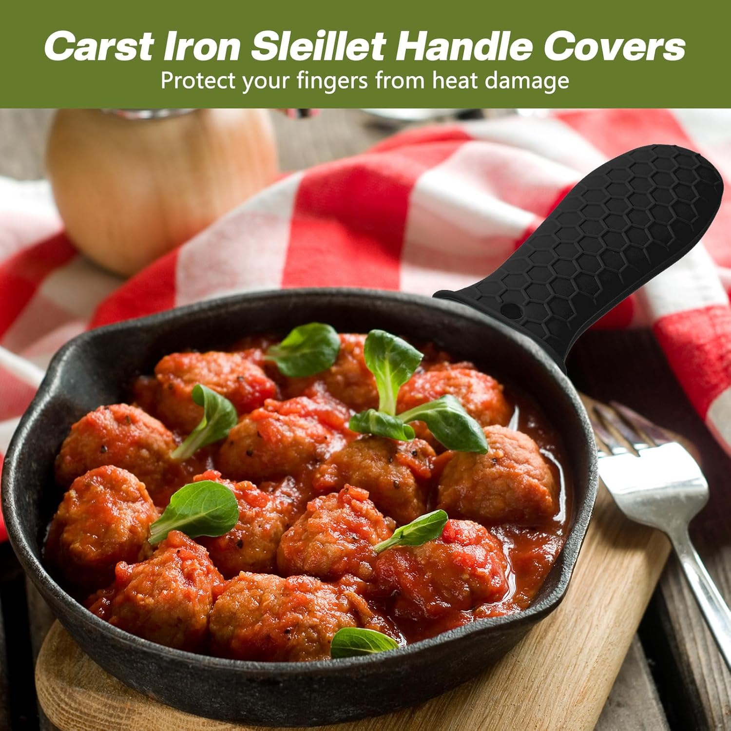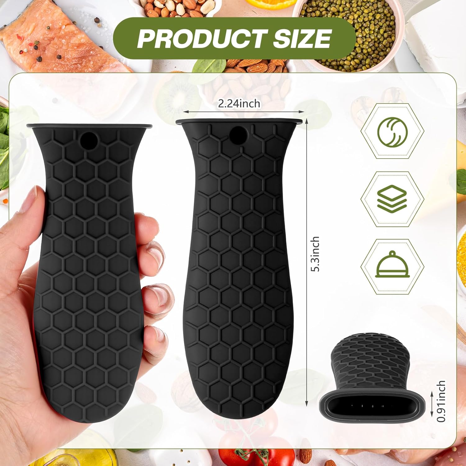 - Thoughtful Design with Anti-slip Texture: featuring a specially designed anti-slip texture and internal silicone ribbing, these cast iron handle sleeves effectively prevent slips and drops while handling hot cookware; This thoughtful design not only enhances safety but also allows for a confident grip, ensuring that you can maneuver pots and pans without fear of burns or accidents in the kitchen