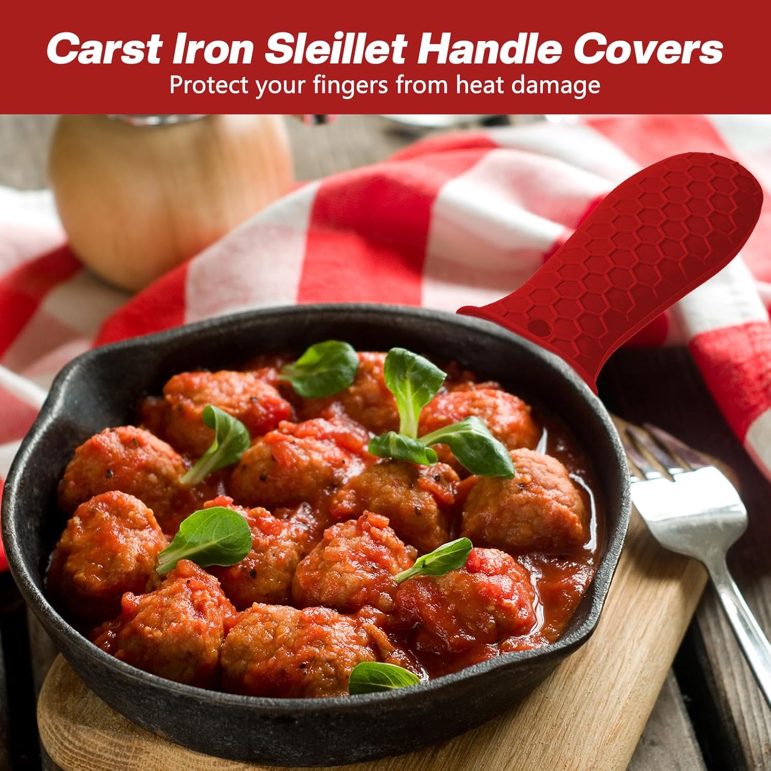 - Thoughtful Design with Anti-slip Texture: featuring a specially designed anti-slip texture and internal silicone ribbing, these cast iron handle sleeves effectively prevent slips and drops while handling hot cookware; This thoughtful design not only enhances safety but also allows for a confident grip, ensuring that you can maneuver pots and pans without fear of burns or accidents in the kitchen