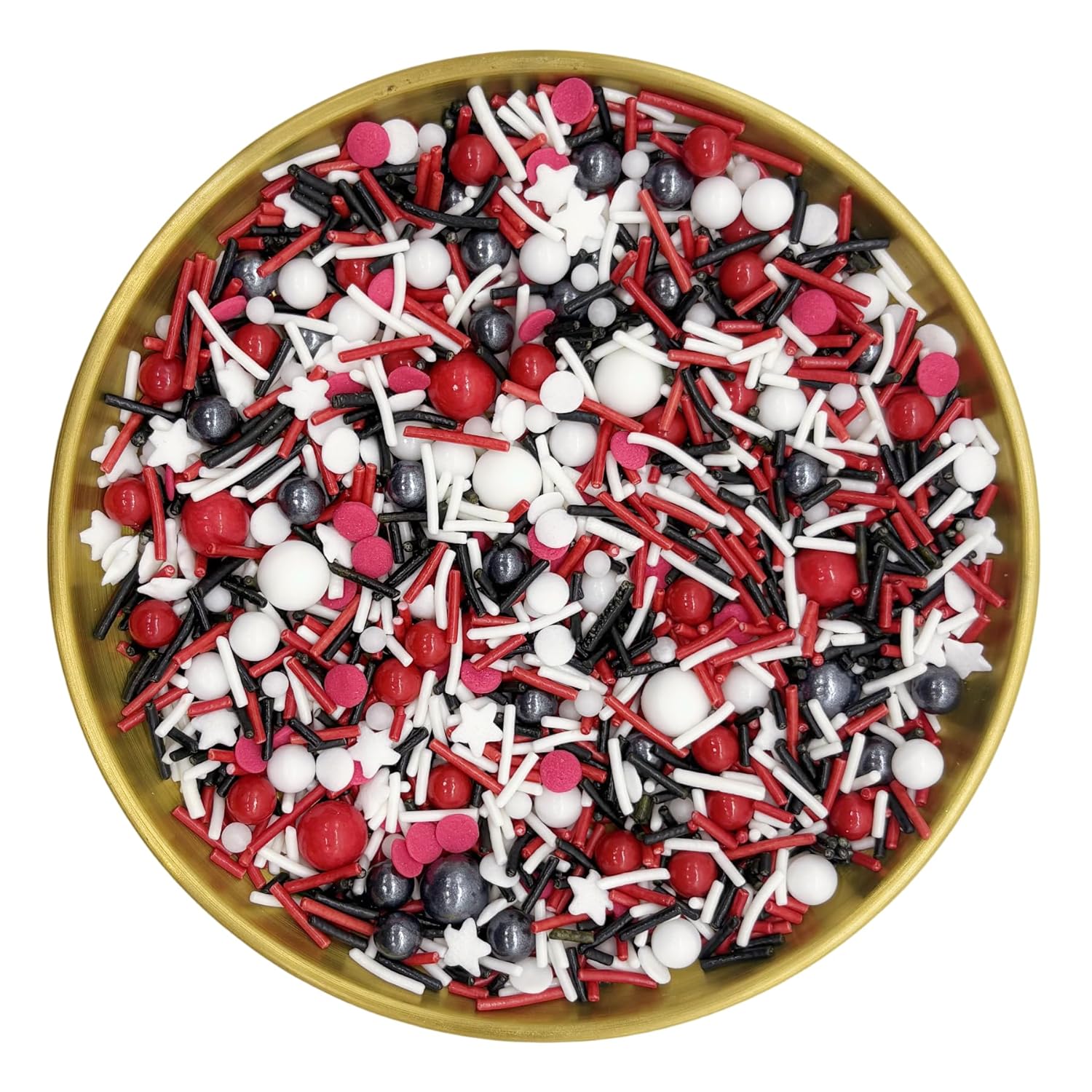 Red & Black & White Sprinkles Candy Mix Size Edible Pearls Cake Decorations Cupcake Toppers Cookie Decorating Perfect for Wedding Party Valentine Halloween Christmas Supplies 4.58OZ