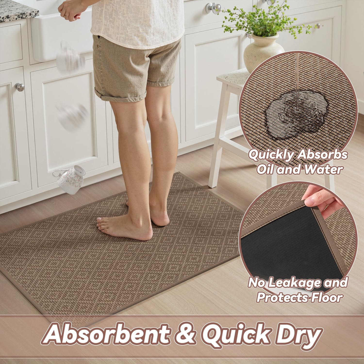 PADOOR Kitchen Floor Mat, Rubber Backed Kitchen Rugs Non Slip Washable, Super Absorbent Kitchen Mats for Floor Front of Sink, 20"x32" Brown