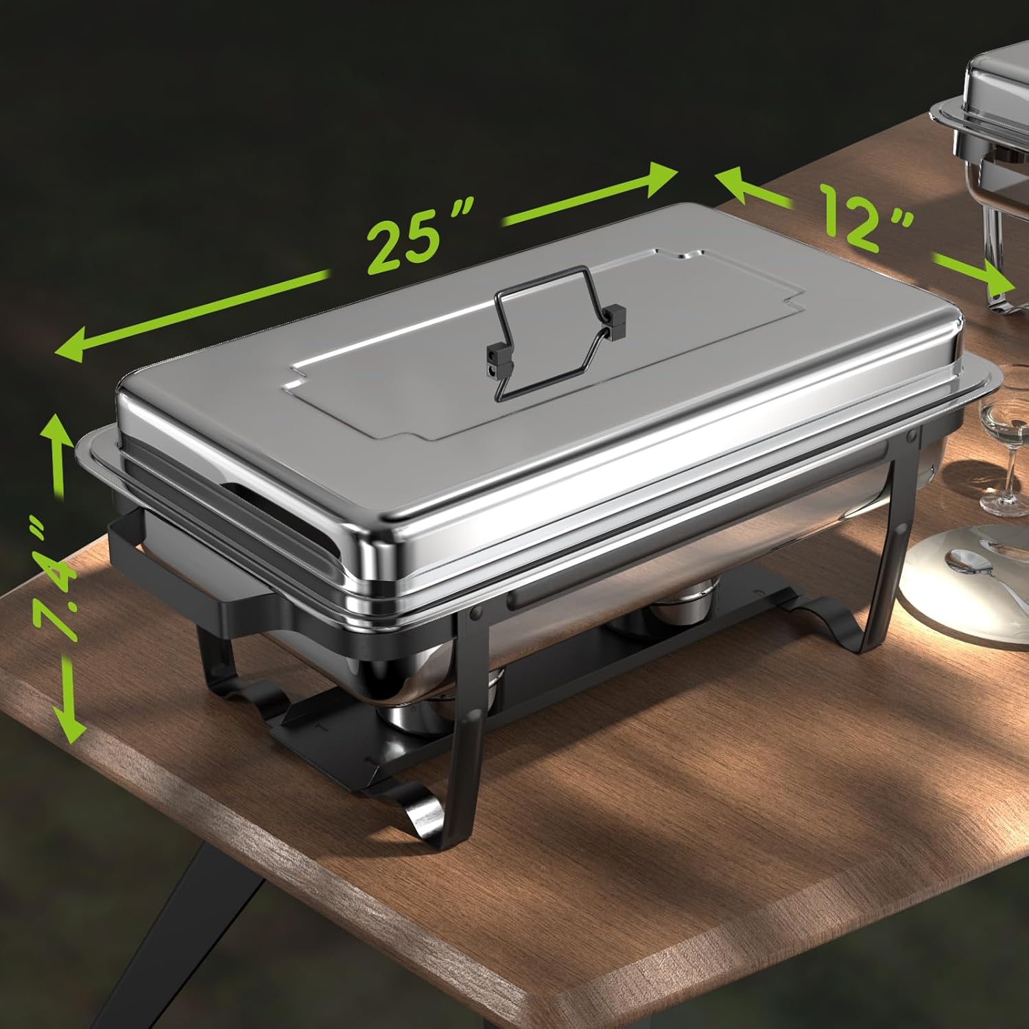 - EASY TO ASSEMBLE: The chafing dish buffet set does not require you to assemble any screws, making disassembly and storage more convenient. The foldable lid handles make it easier for you to store. This chafing dishes have roll-edge design that will protect your fingers