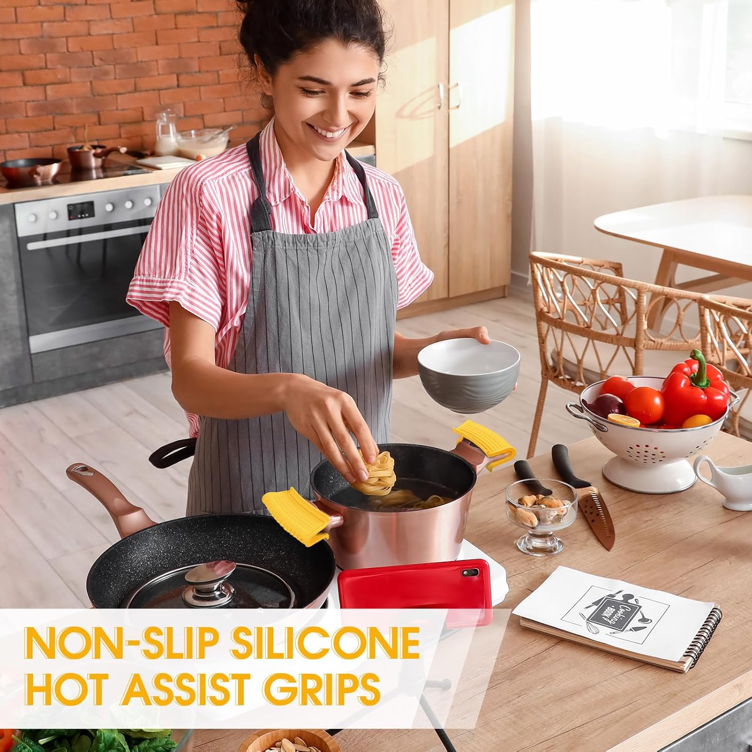 - High Heat Resistance: handle cover made of quality silicone, resistant to high temperatures of 475°F/ 250°C, suitable for high temperature cooking scenarios such as ovens, microwave ovens, air fryers, etc., safe and does not release harmful substances