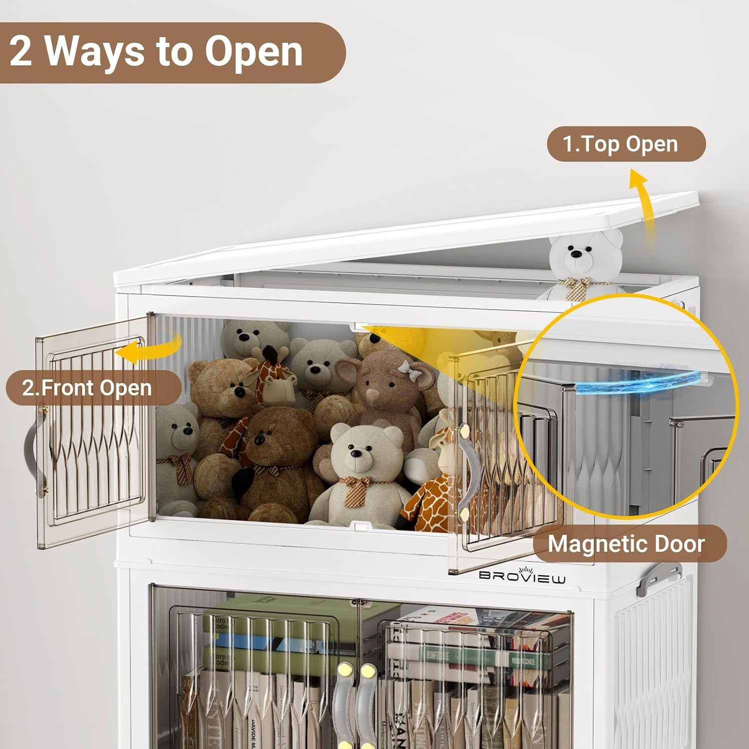- 【5 Mins Easy Assembly & Warm Tips】The stackable storage bins open front only take 5 minutes to assemble the entire storage cabinet. Thanks to the foldable and stackable design, Broview v8 stackable storage bins can be disassembled and folded at any time when not in use. Warm Tips: Currently only 120QT black come with multi Lid, other need to be purchased separately.