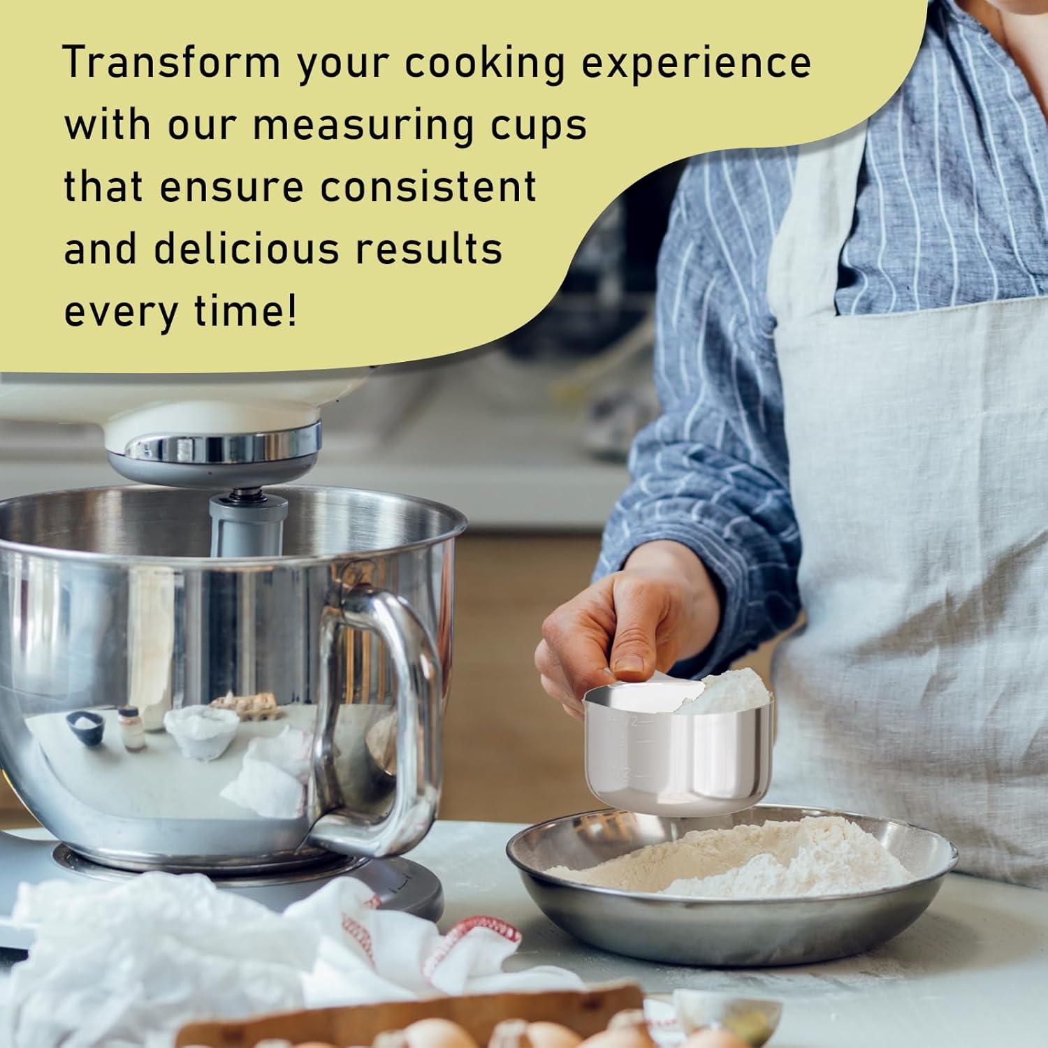 - 【Durable】The integrated molded 304 stainless steel measuring cup is designed for sturdiness and durability, with a solid construction that can withstand regular use without breaking or warping
