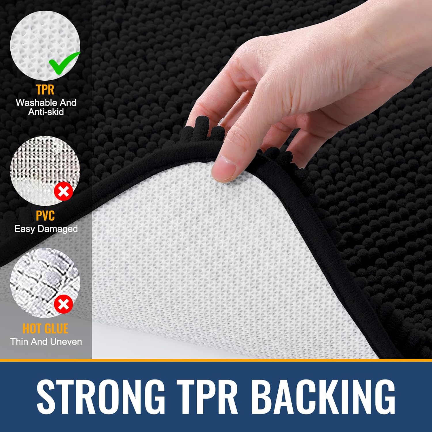 Arotive Bathroom Rugs 70x24, Extra Soft Absorbent Shaggy Chenille Bath Rugs, Machine Washable Rubber Backing Non-Slip Bath Mats for Bathroom Floor Tub and Shower, Home Decor Accessories, Black