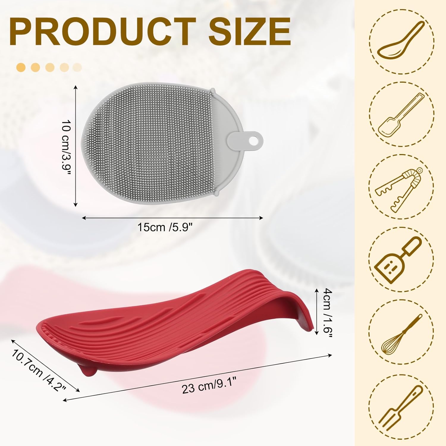 uxcell 1 Set Silicone Spoon Rest for Stove Top, Silicone Spoon Holder for Cooking Spatula, Ladle, Brush Red/Grey