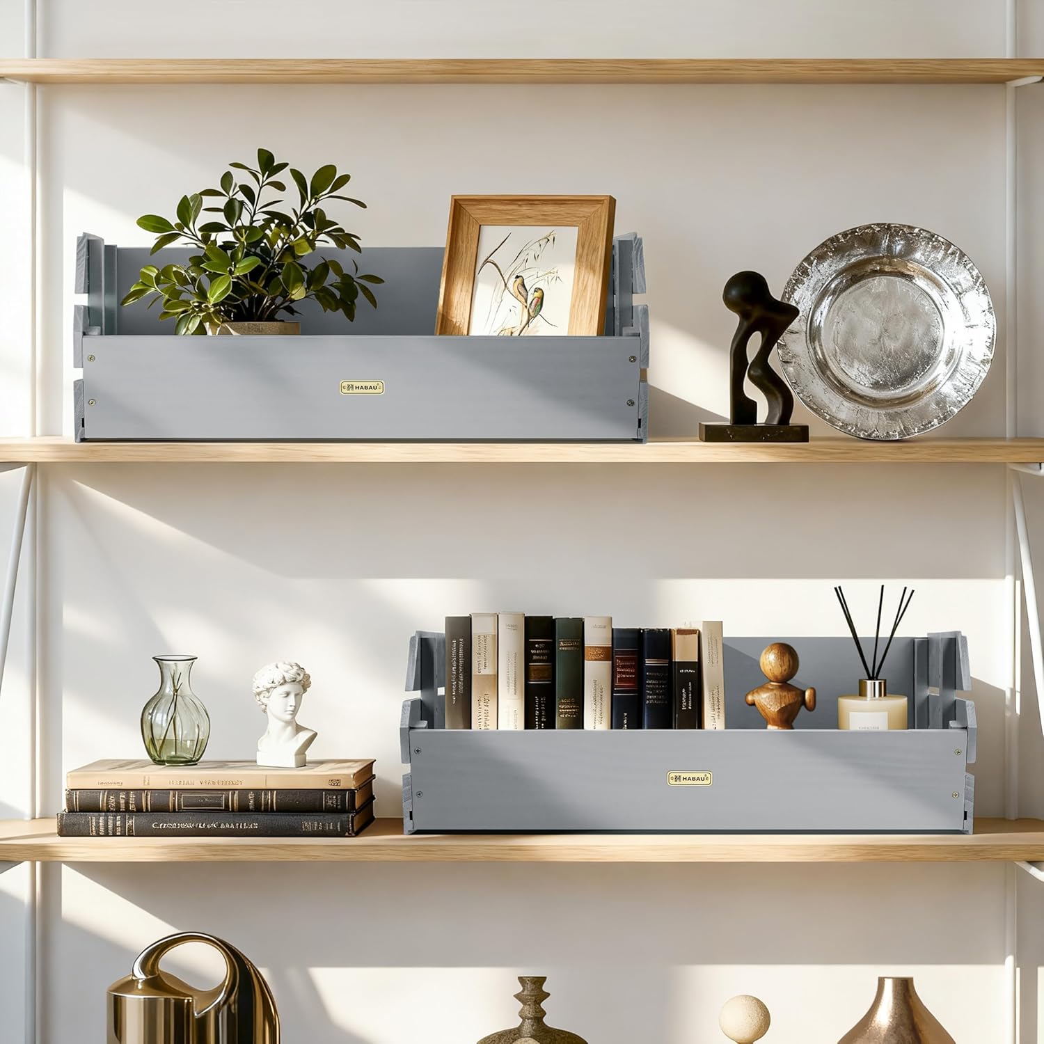 - Space-Saving: Maximize storage in tight spaces with these wooden basket. Hidden handles make them easy to move when needed