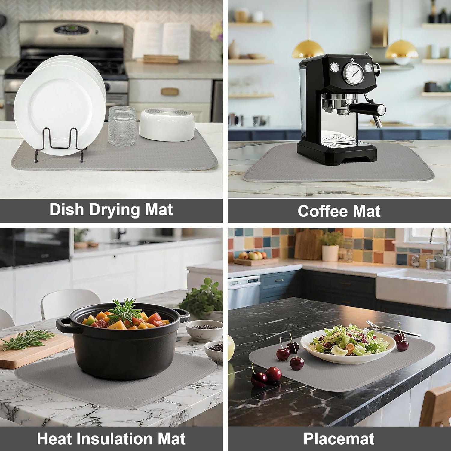 Light Gray Dish Drying Mats 17” x 24” – XXL Kitchen Drying Mat for Counter, Super Absorbent Microfiber Dish Rack Mat, Foldable Drying Pad for Dishes, Pots, Pans – Dish Drainer Mat