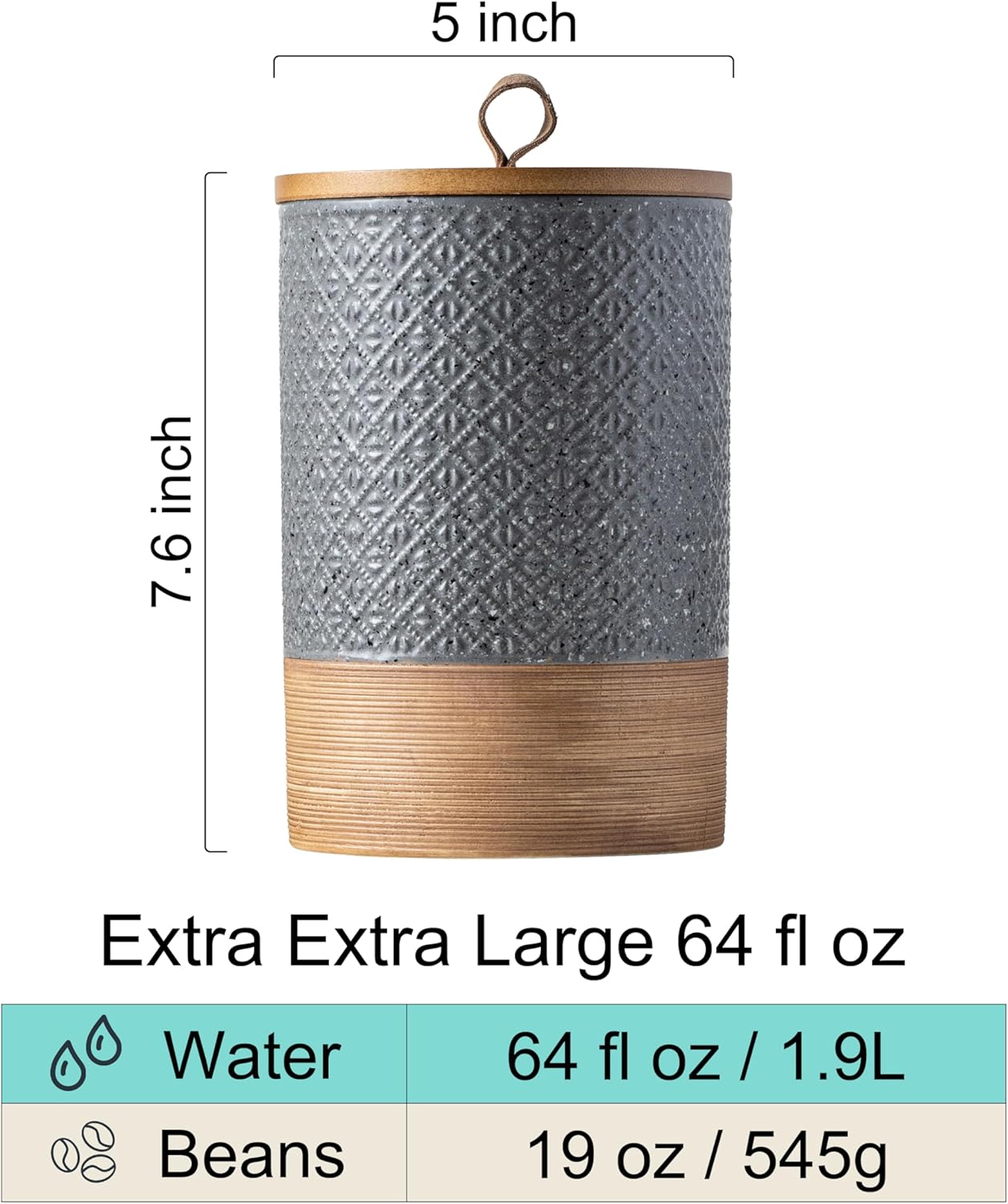 - Heavy-Duty Ceramic Build: This 64oz ceramic coffee canister means business, made from tough, high-quality ceramic with a smooth embossed patterns that’s a snap to clean. Dishwasher-safe for easy maintenance—because big jars need easy care too