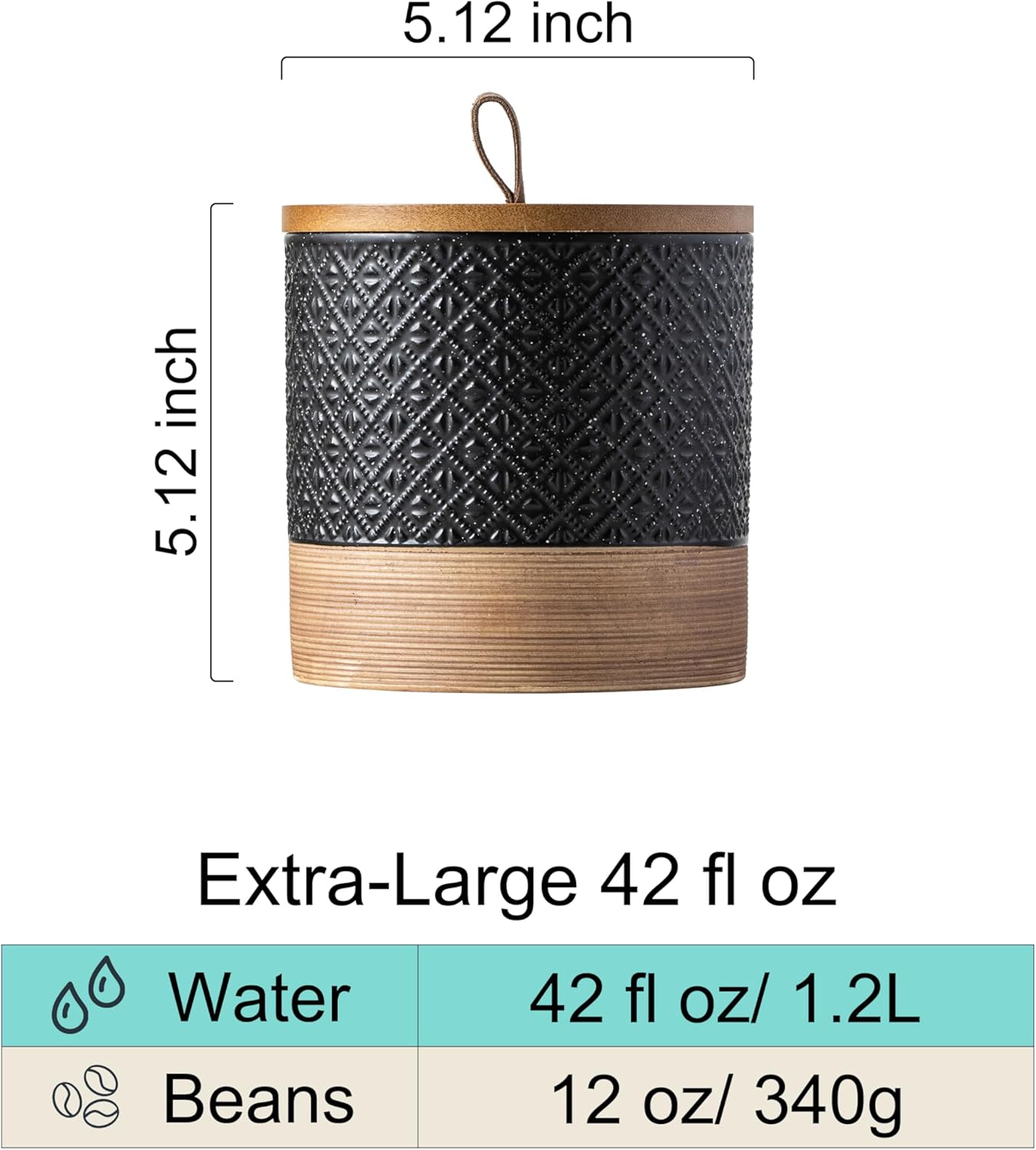 - Ultra-Airtight Wooden Lid: The wooden lid means business for freshness, with a tight gasket locking out air, moisture, and odors to keep beans crisp and grounds flavorful