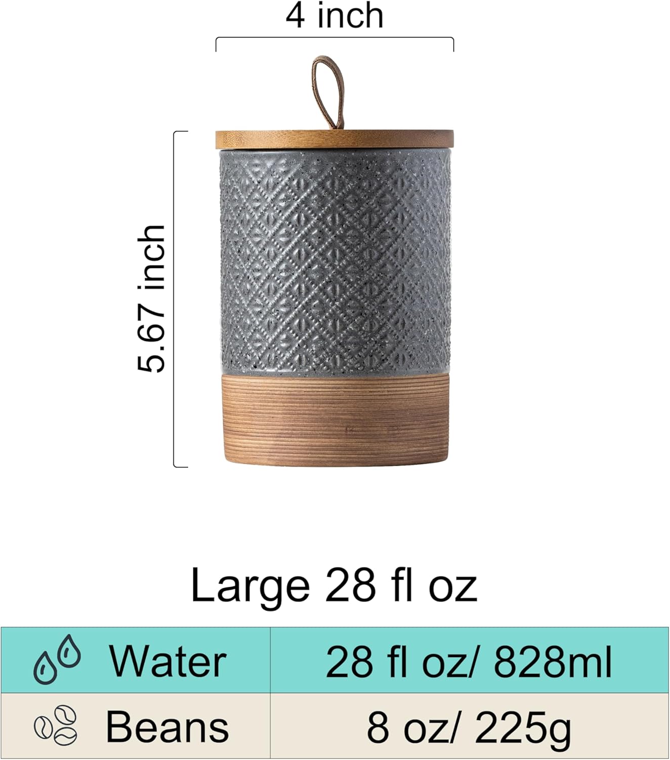 - High-Quality Ceramic Make: This 28oz ceramic coffee canister is crafted from premium ceramic, boasting lovely embossed patterns and easy to clean—dishwasher-safe for lazy cleanup days
