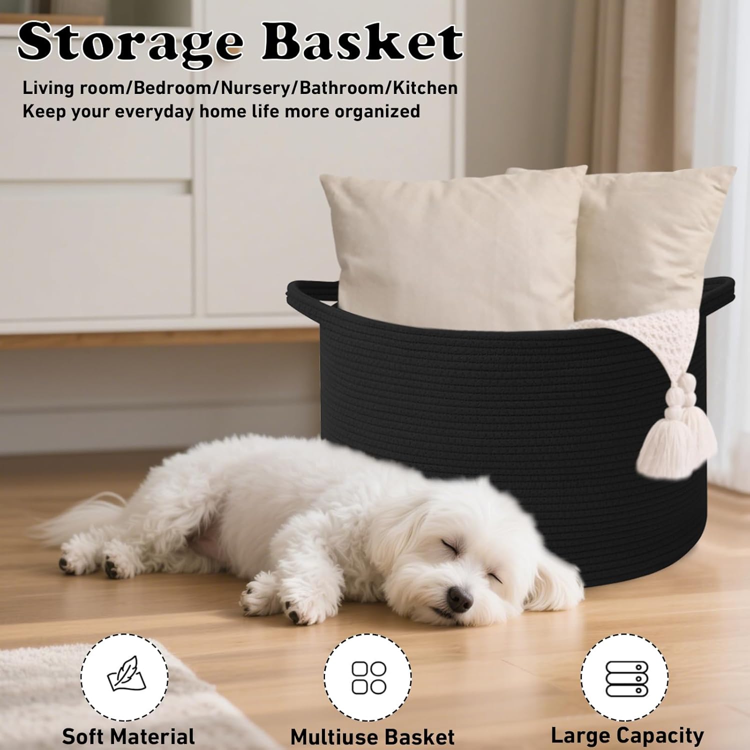 Large Blanket Basket for Organizing,65L Closet Organizers and Storage Bins Box for Shelves Woven Rope Storage Baskets,Living Room,Bedroom,Dorm,Laundry room (Black)
